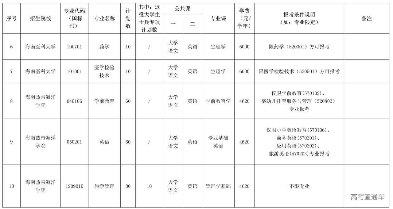 1.2026年海南省专升本招生院校、招生专业及专业报考条件说明详见附件1,考生(含以下报考两个专项计划的考生)须选择符合院校报考条件要求的专业进行报考。