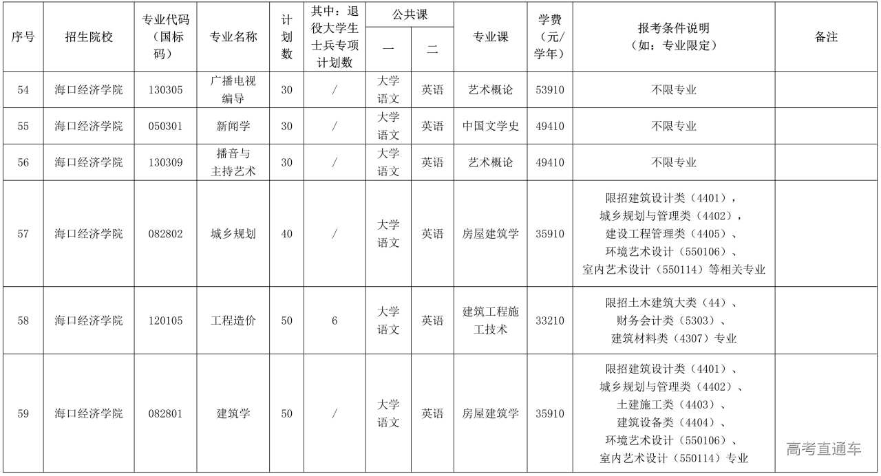 2026年海南省专升本招生院校和专业