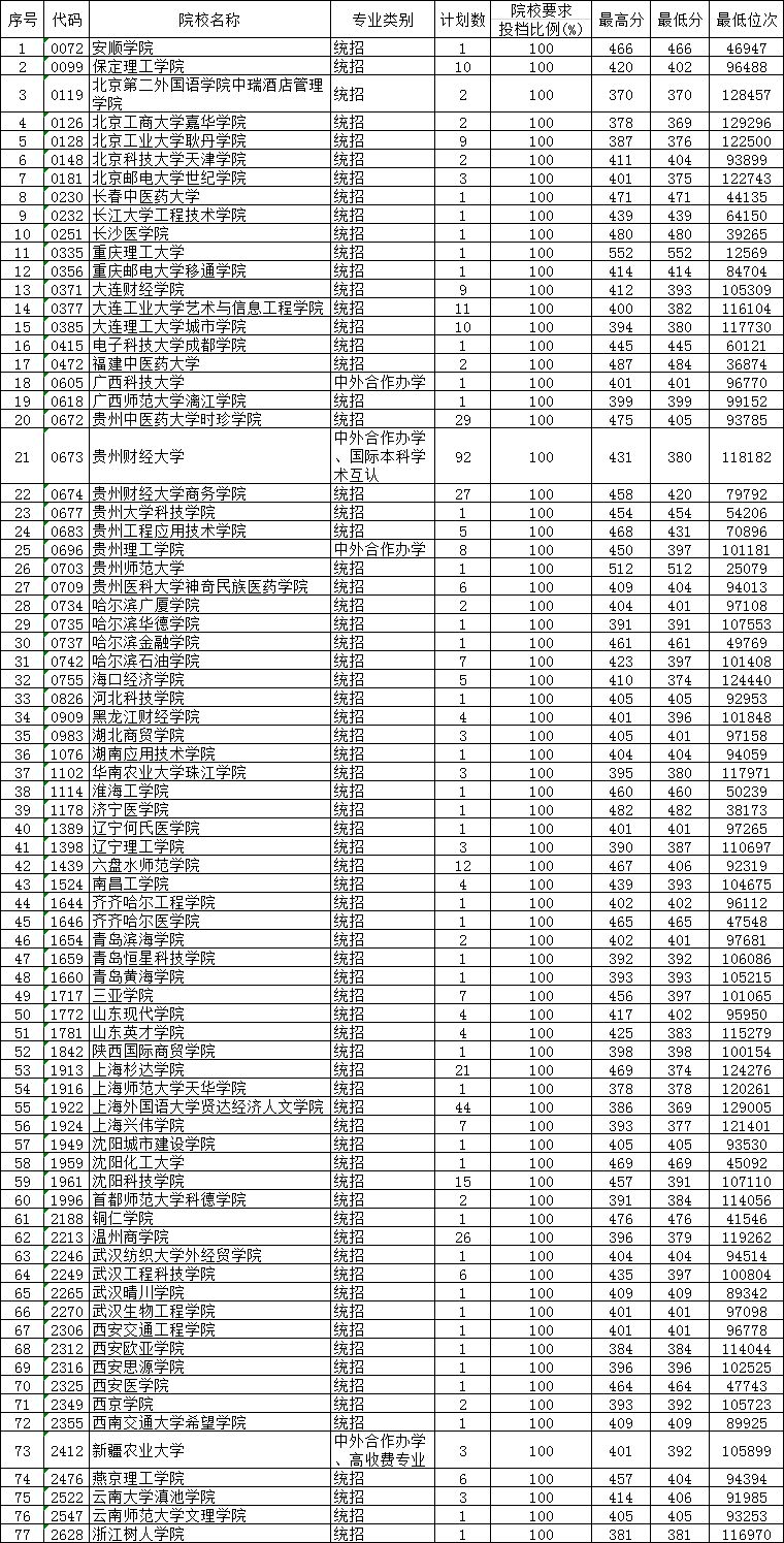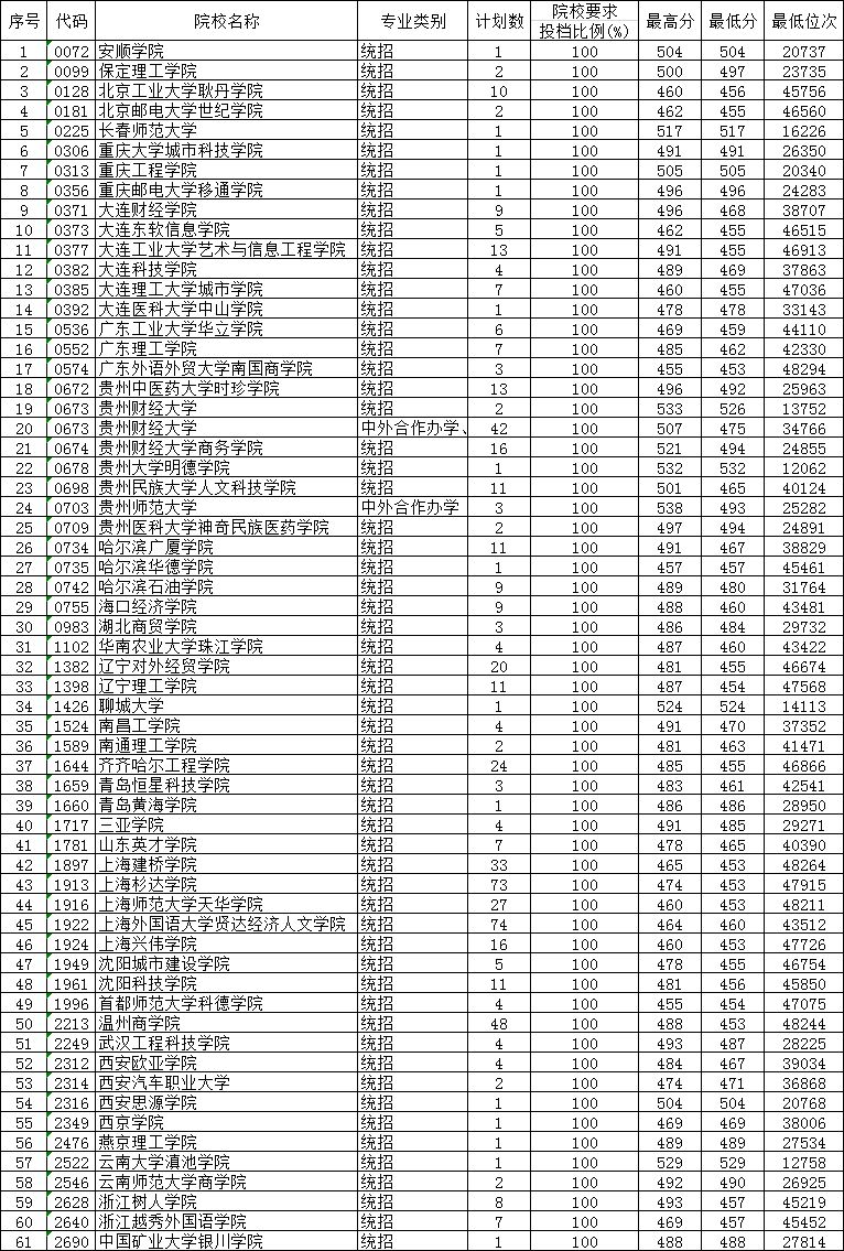 贵州省2019年高考第二批本科第2次补报志愿投档情况 (理工、文史)