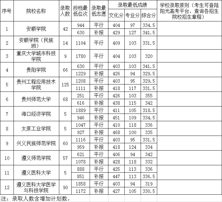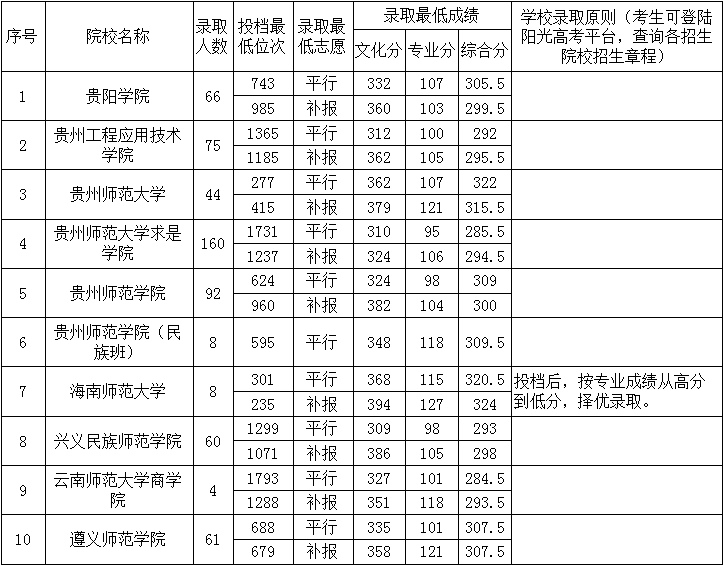 贵州省2019年高考体育类第二批本科院校7月17日录取情况