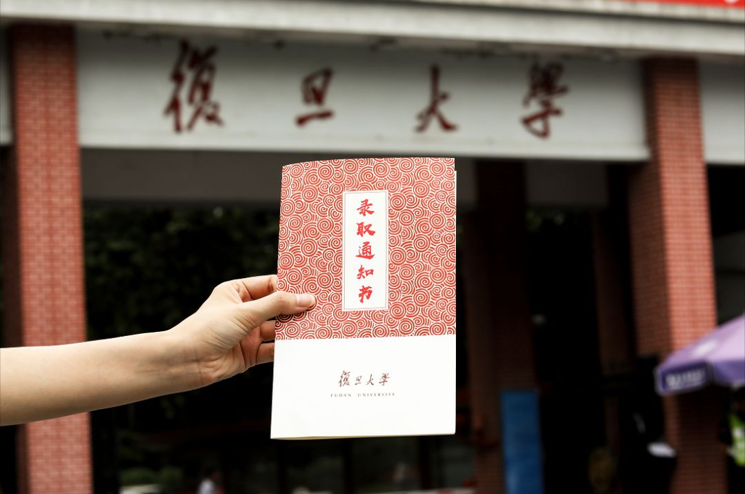 复旦大学录取通知书以复旦红为主调,热情奔放,如旭日东升,象征着年轻一代复旦人的青春朝气,也表达对新生的祝福与欢迎。