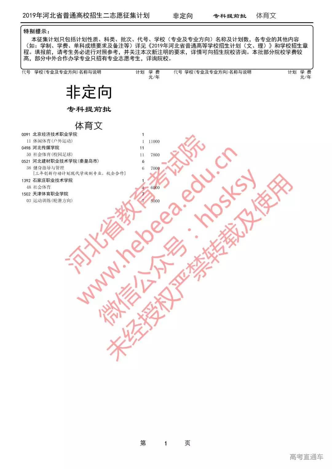 特别提醒:本征集计划只包括计划性质、科类、批次、代号、学校(专业及专业方向)名称及计划数,各专业的其他内容(如:学制、学费、单科成绩要求及备注等)详见《2019年河北省普通高等学校招生计划(文、理)》和学校招生章程。填报前,请考生务必进行对照参考,并关注本次新注明的要求,详情可向招生院校咨询。