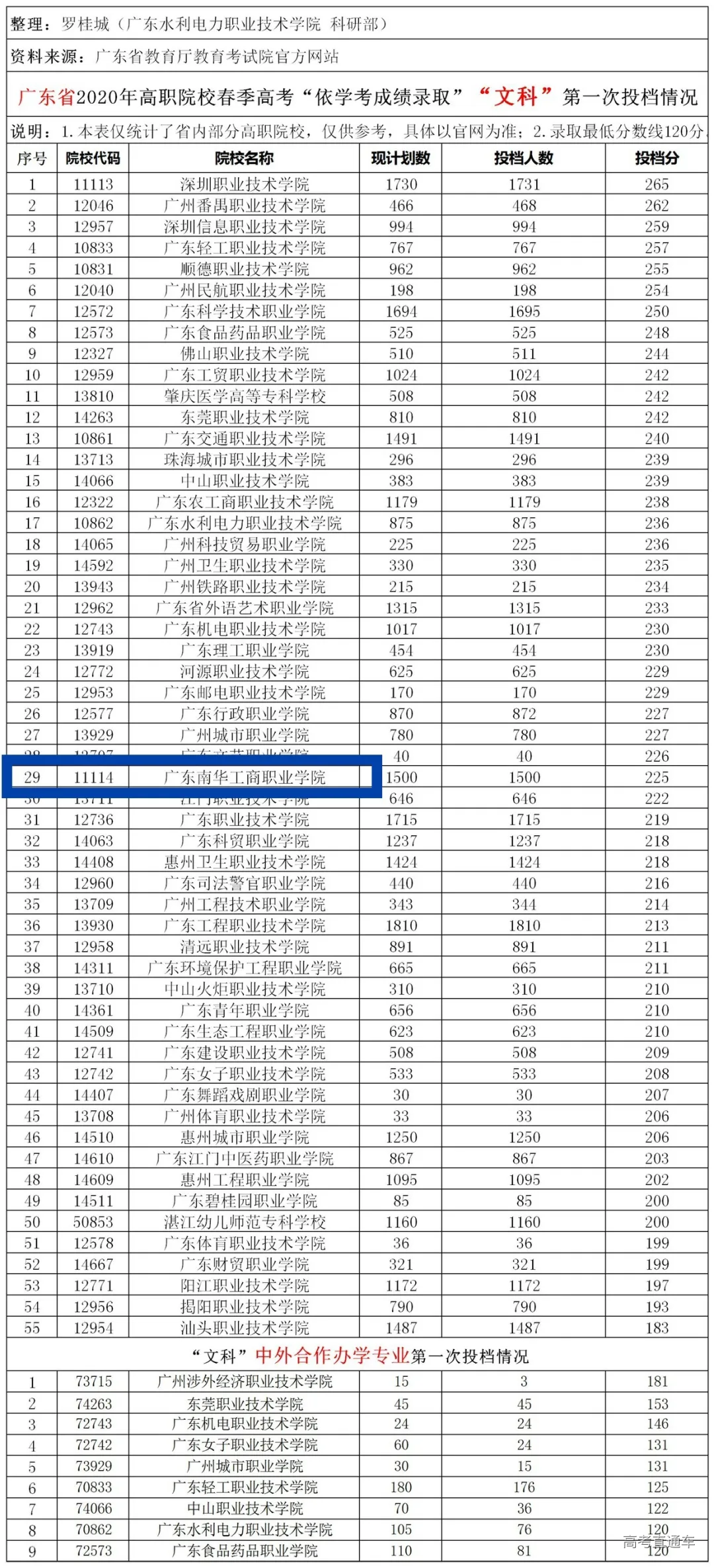 相比广东省2019年春季高考我校文科最低录取分213分,上涨12分。