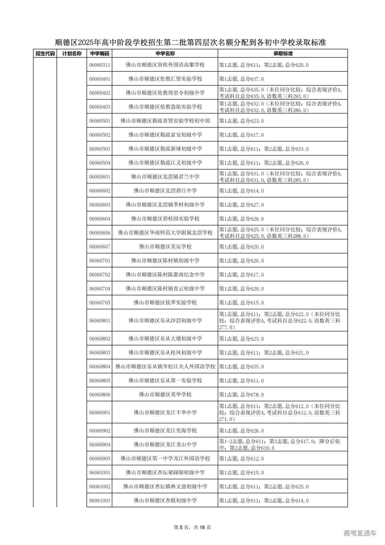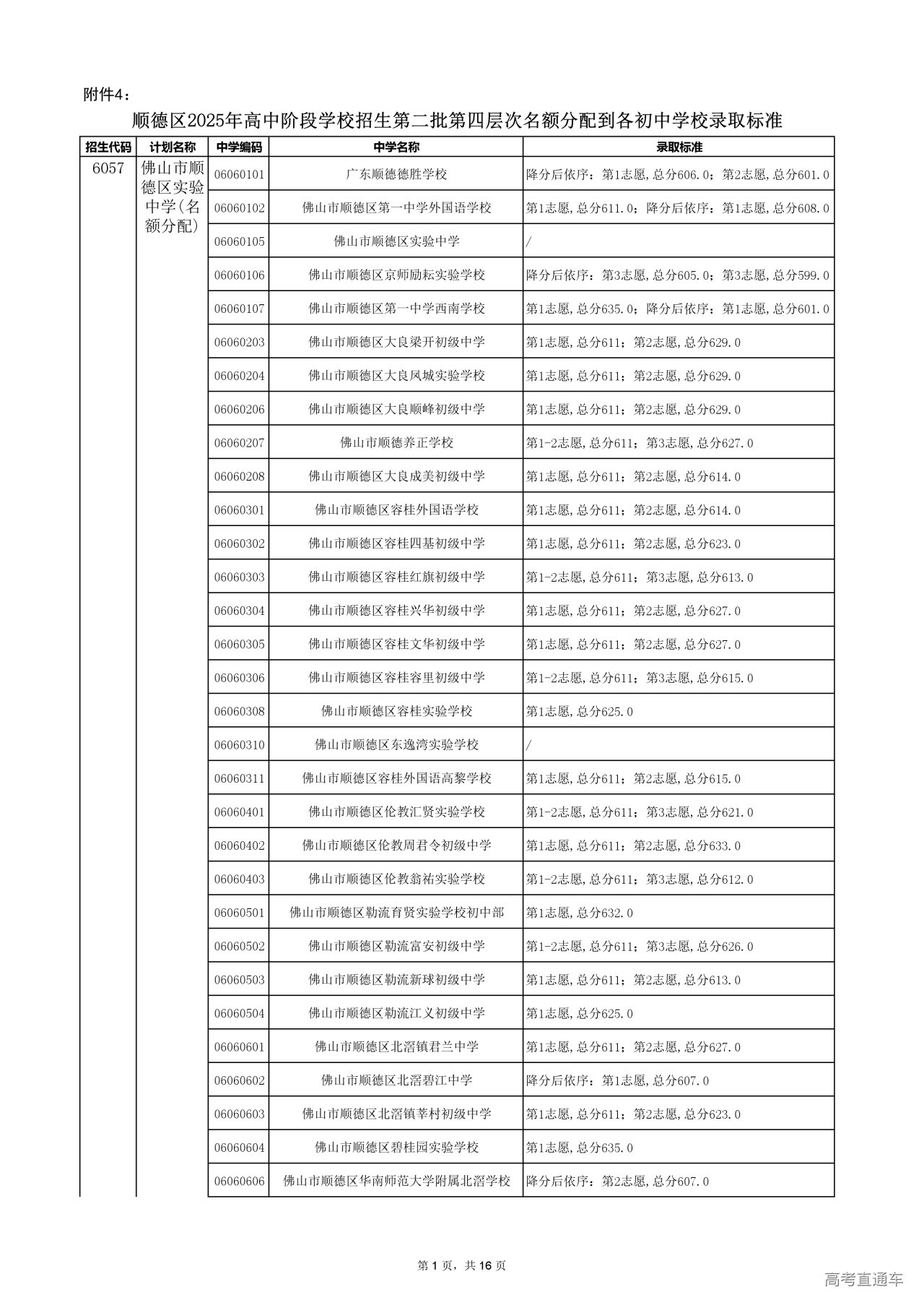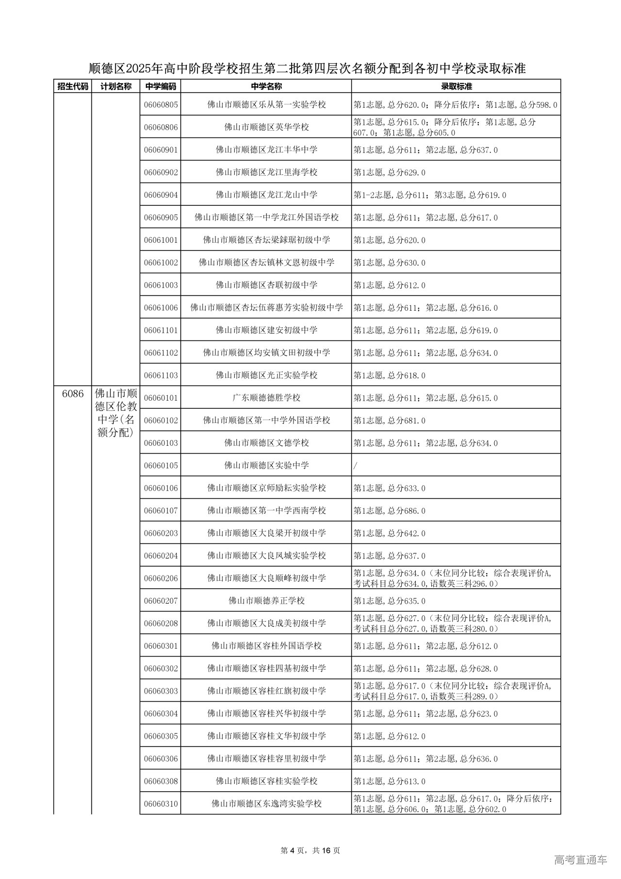 附件4:顺德区2025年高中阶段学校招生第二批第四层次名额分配到各初中学校录取标准.pdf