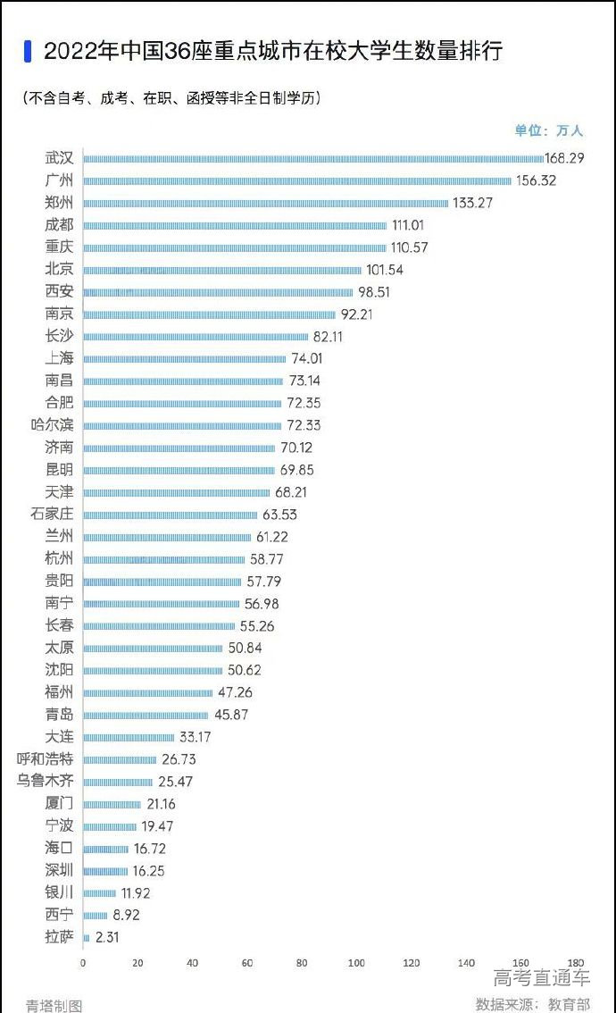 同时也不得不感慨一句:大城市的大学生数量真的超多!希望今年高考的你,也可以前往这些充满优秀同龄人的大城市好吗?