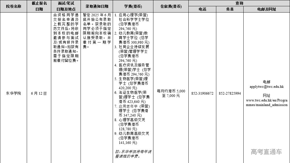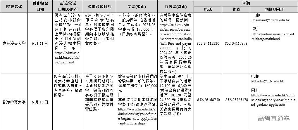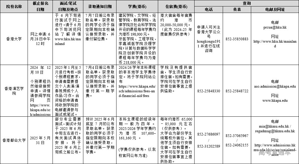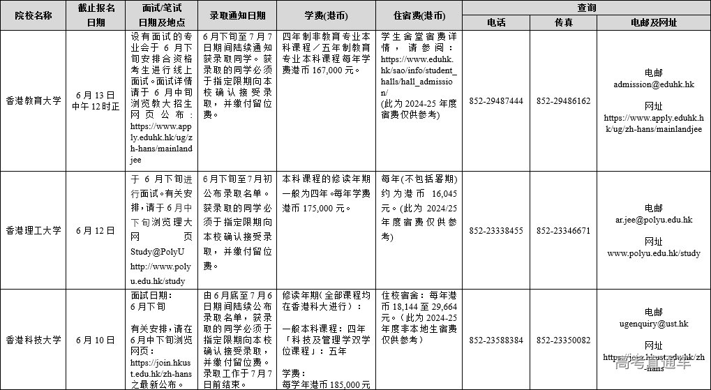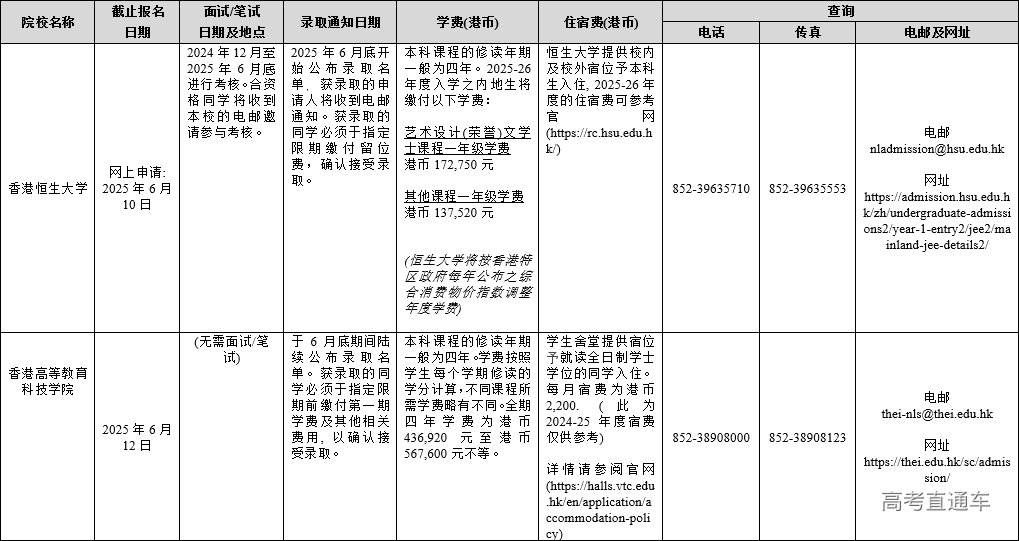 附件:1.2025年香港单招院校在内地招生联系及查询方式