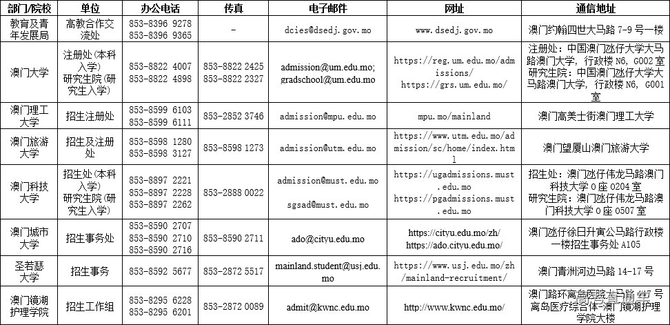 2.2025年澳门高等学校在内地招生联系及查询方式