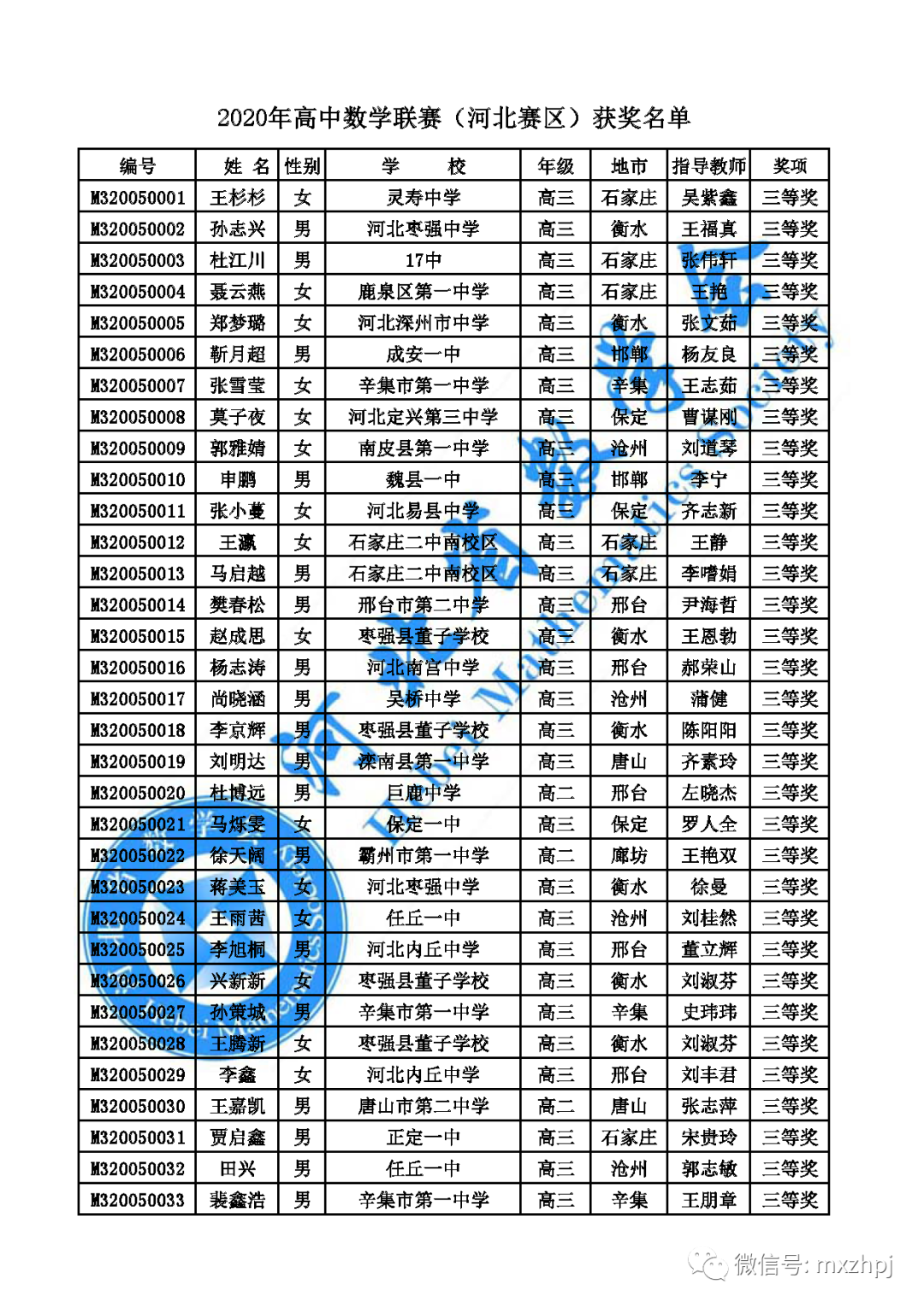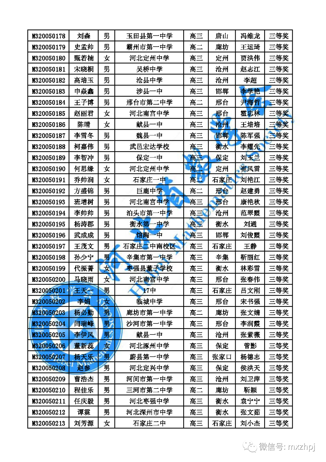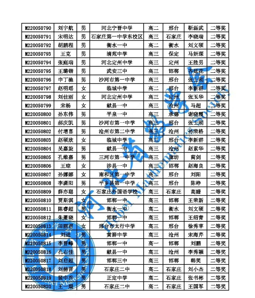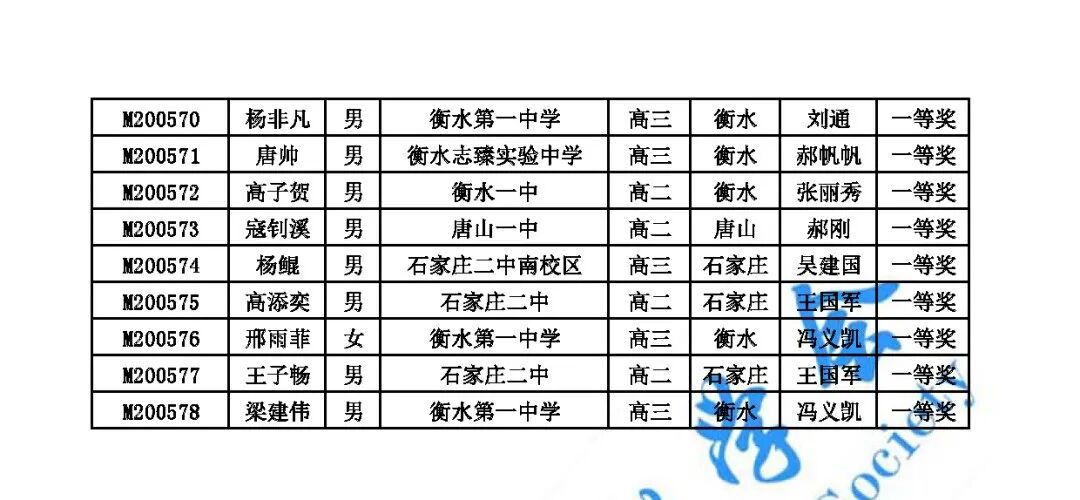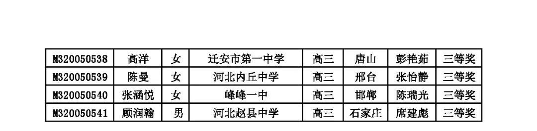 10月14日,河北2020数学联赛省一省二省三获奖名单公布,其中,省一78人,省二820人,省三541人。