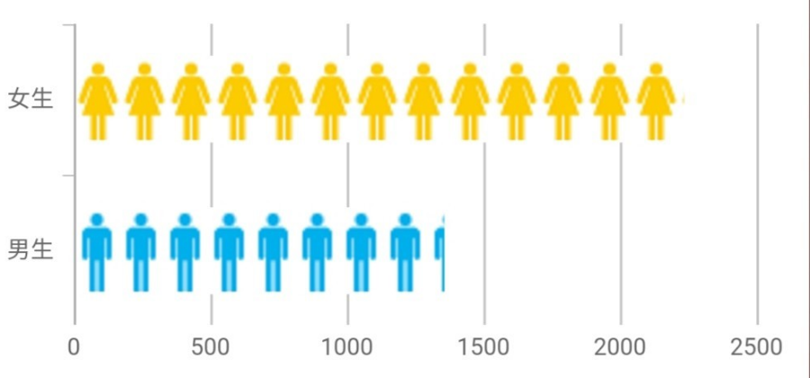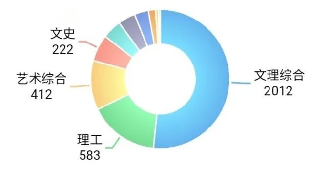 2020年,本专科新生录取总人数为3591人 其中男生1355人,占比37.73% 女生2236人,占比62.27%