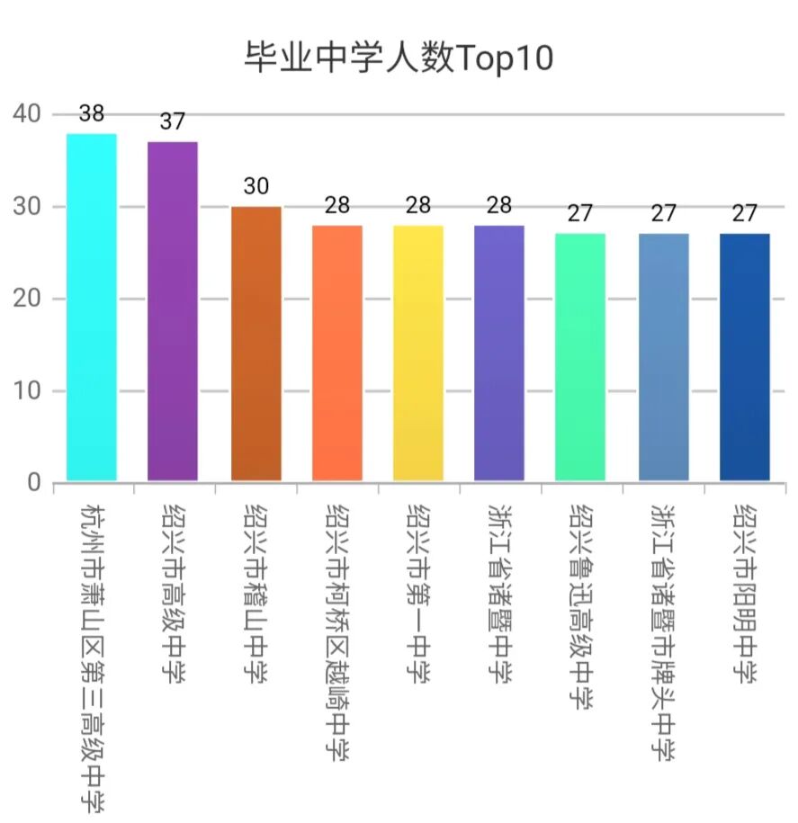 在来自天南地北各个地方的莘莘学子中,毕业于杭州市萧山区第三高级中学的小伙伴人数最多,达到了38位,校友团人数不错哟!