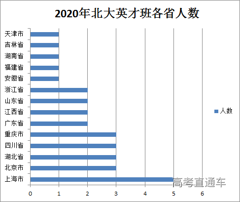 2、上海市2020年录取5人,录取人数遥遥领先其他省市,通过查看往年数据发现,2019年上海录取7人(共27人),2018年上海录取6人(共20人),这说明上海低年级考生在数学方面存在学科优势,上海作为为北大数学英才班人才选拔基地成为惯例;