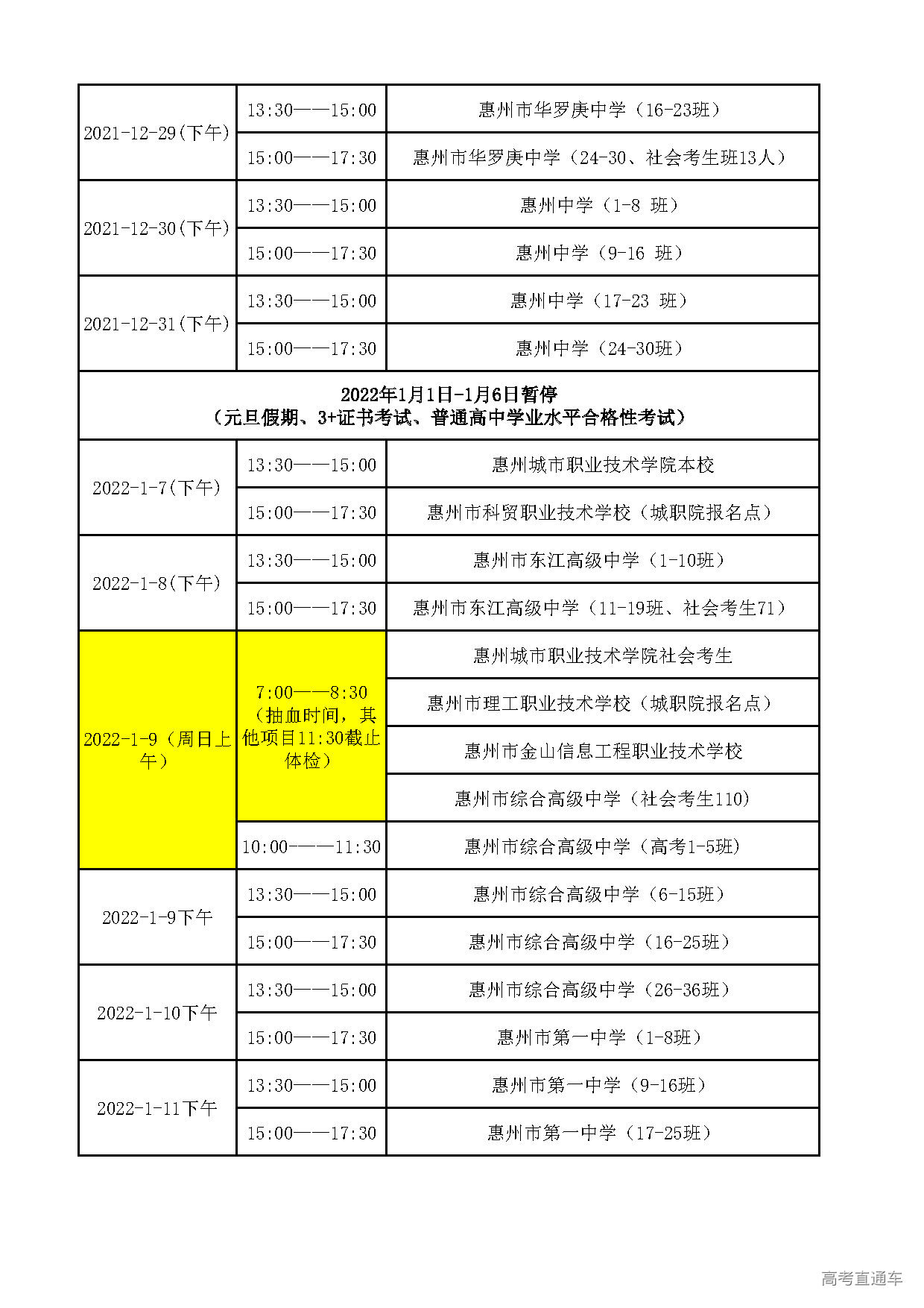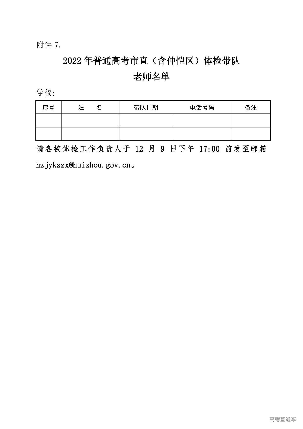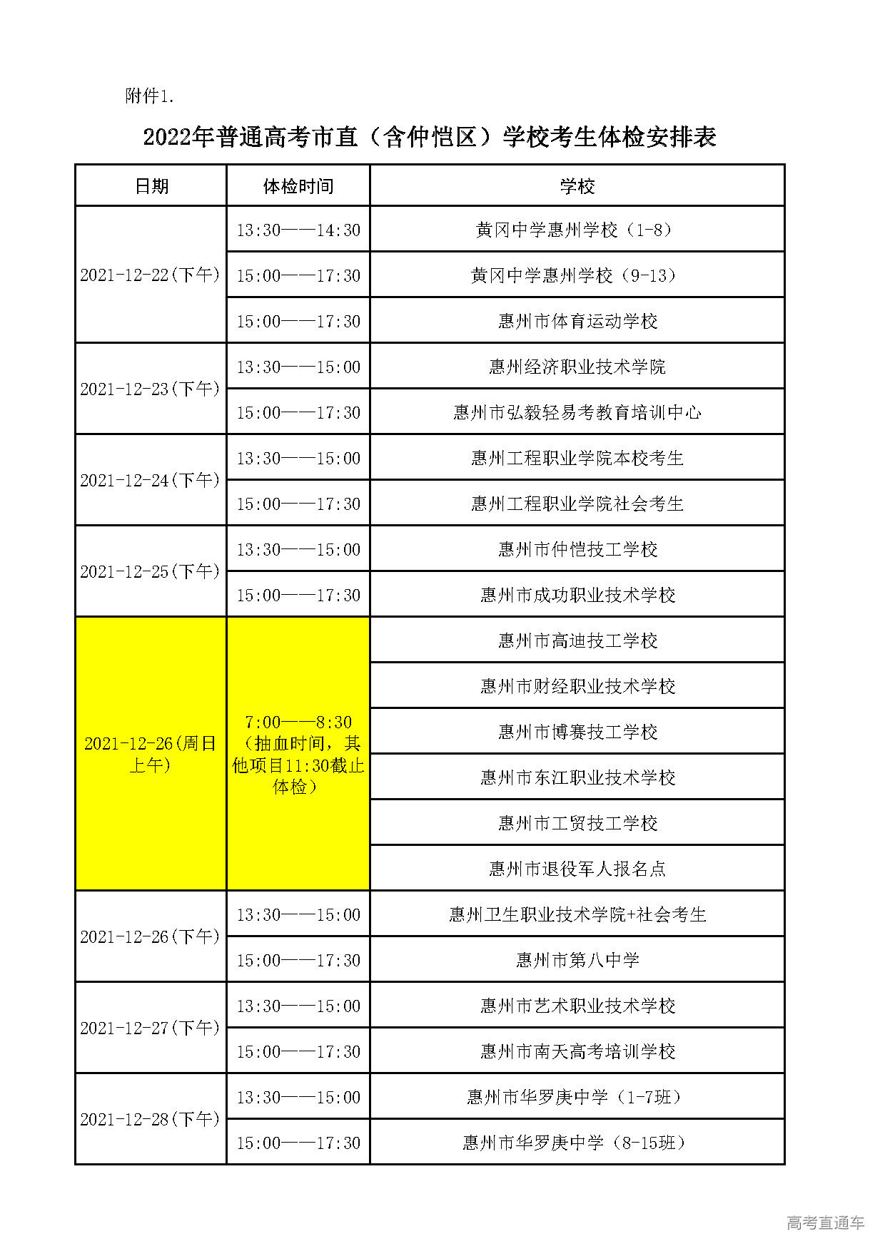 附件:1.2022年普通高考市直(含仲恺区)学校考生体检安排表