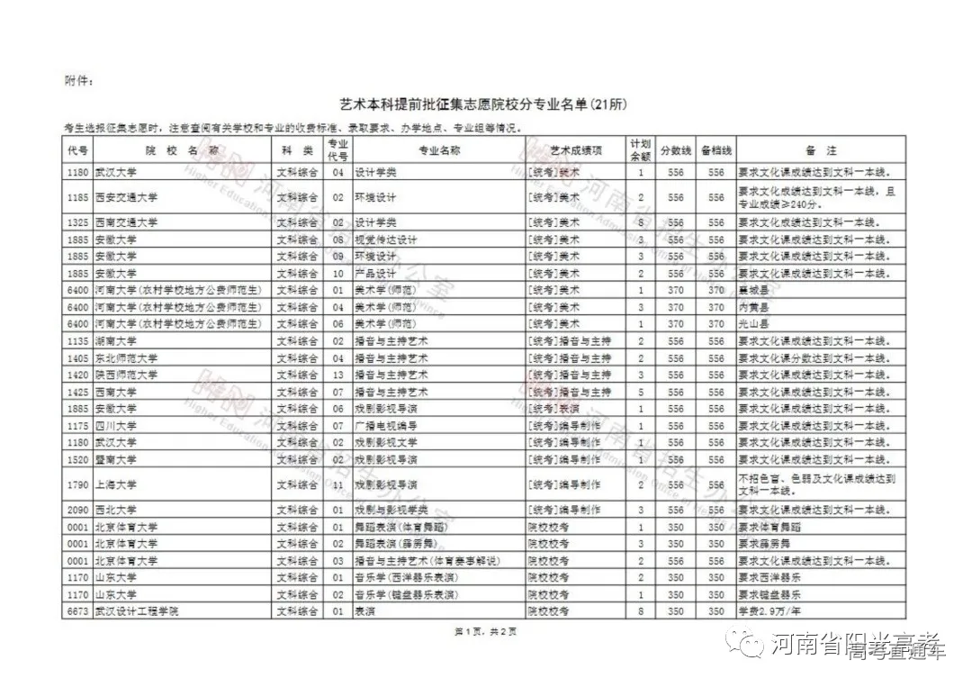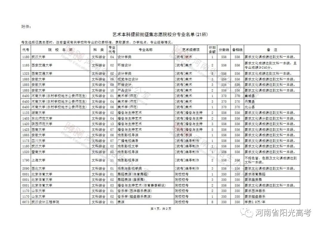 一、征集志愿的生源范围 二、网上填报征集志愿办法 (三)考生选报征集志愿时,务必注意查阅《招生考试之友》(招生专业目录)和有关学校的招生章程,了解学校的录取要求(如文化课成绩、专业成绩、乐器种类等)及收费标准、办学地点等情况。 三、加强指导和服务工作 艺术类本科提前批征集志愿学校名单 (21所)