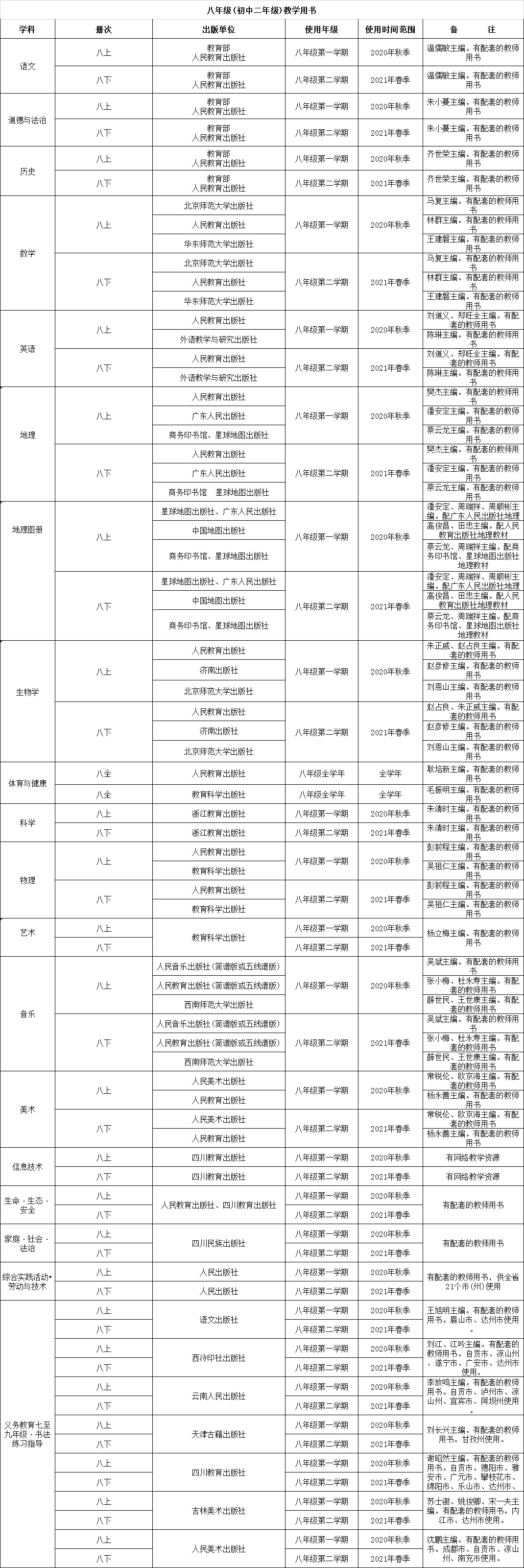 此前,省教育厅最新公布的教材用书,包括了整个九年义务教育阶段+高中阶段:小学1年级—6年级、初中7年级—9年级的主科目用书清单!