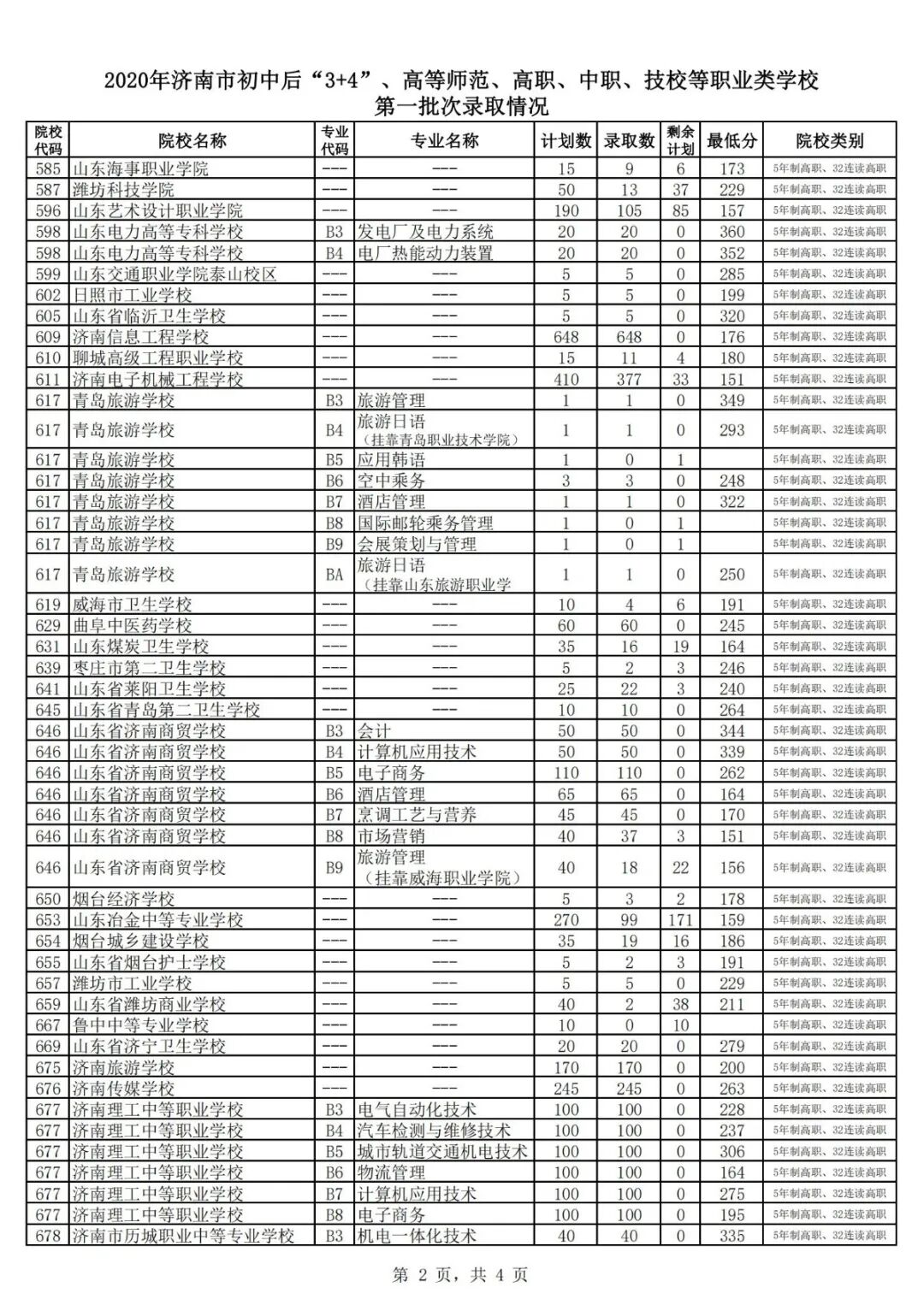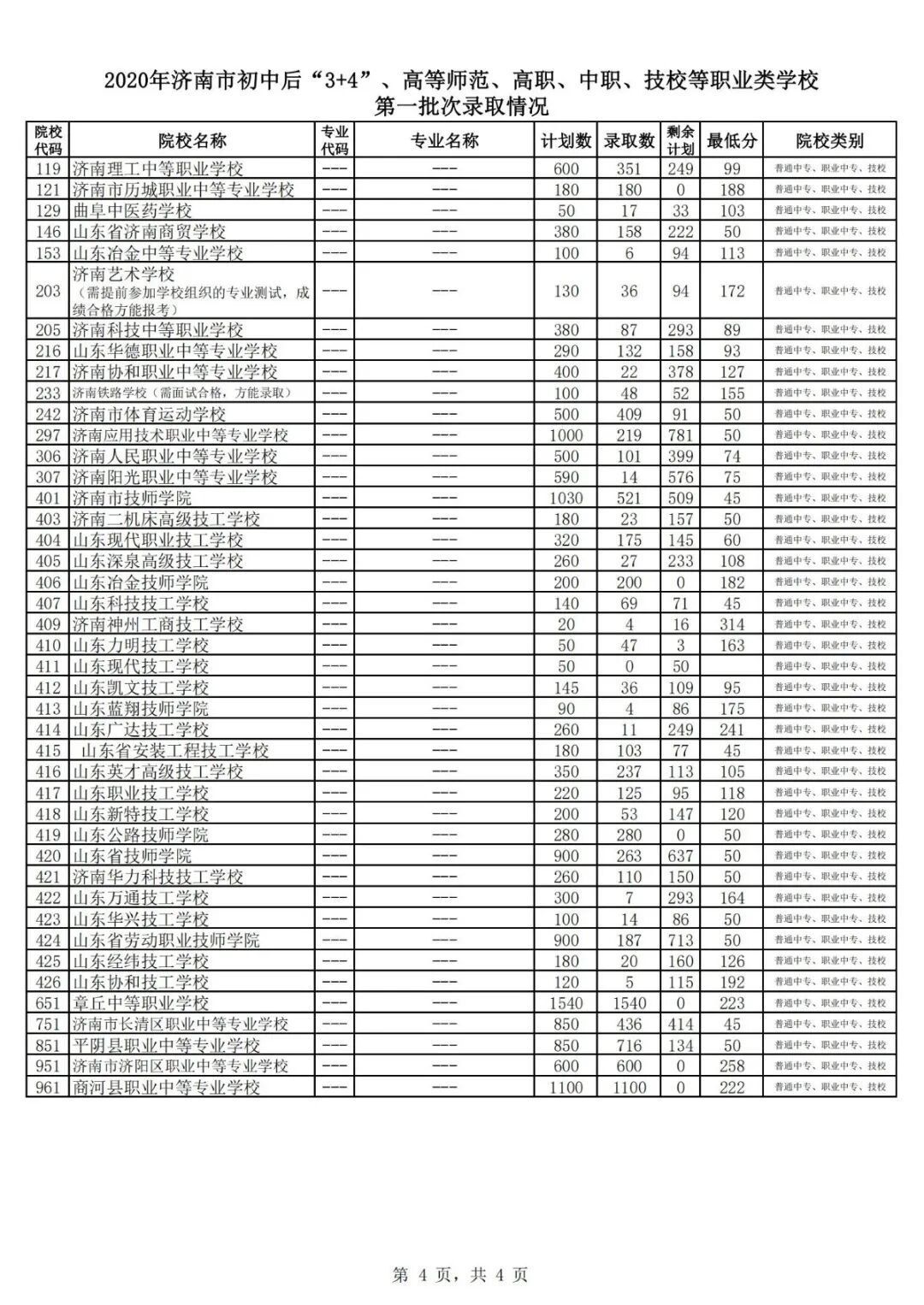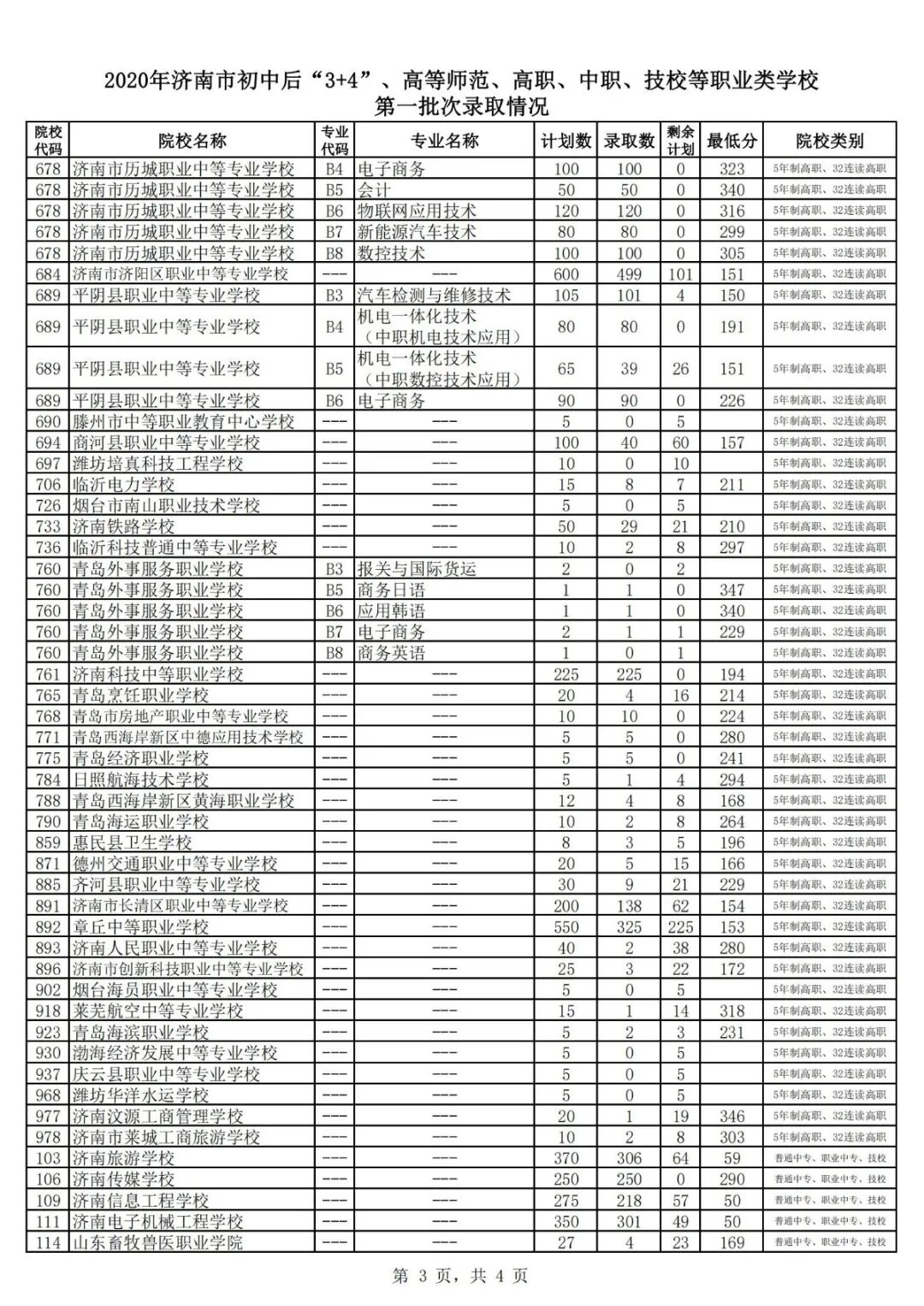 三、2020年初中后“3+4”、高等师范、高职、中职、技校等职业类学校第一批次录取情况