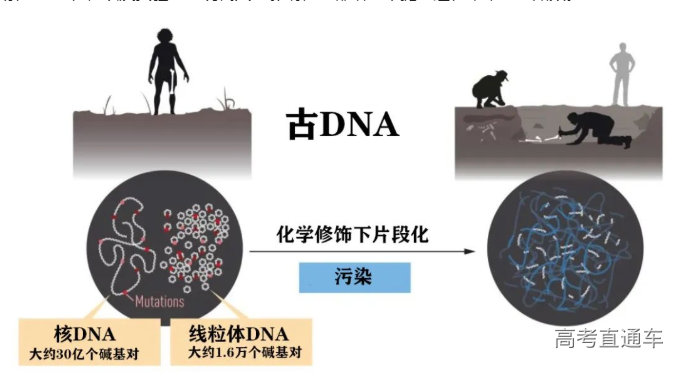 一方面 DNA 会被不断降解。外界环境的“风吹雨打”都会对 DNA 结构造成损伤,而 DNA 本身也存在半衰期(不同温度或环境条件下不等,大约在数万到数十万年左右),所以我们很难得到完整的 DNA 片段。