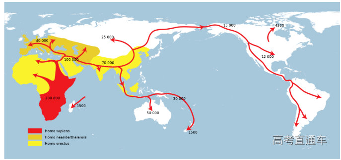 基于这项研究,科学家们也慢慢绘制出了现代人迁徙的路线图 | 图源:Wikipedia