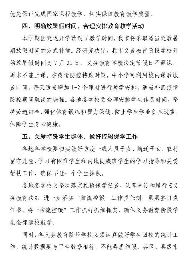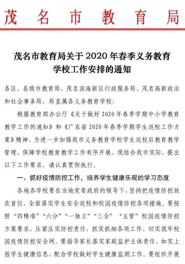 日前,茂名市教育局发布了关于2020年春季义务教育学校工作安排的通知,明确了茂名市义务教育阶段学校开始放暑假时间为7月31日,义务教育学校法定节假日不调课,周末不能上课。