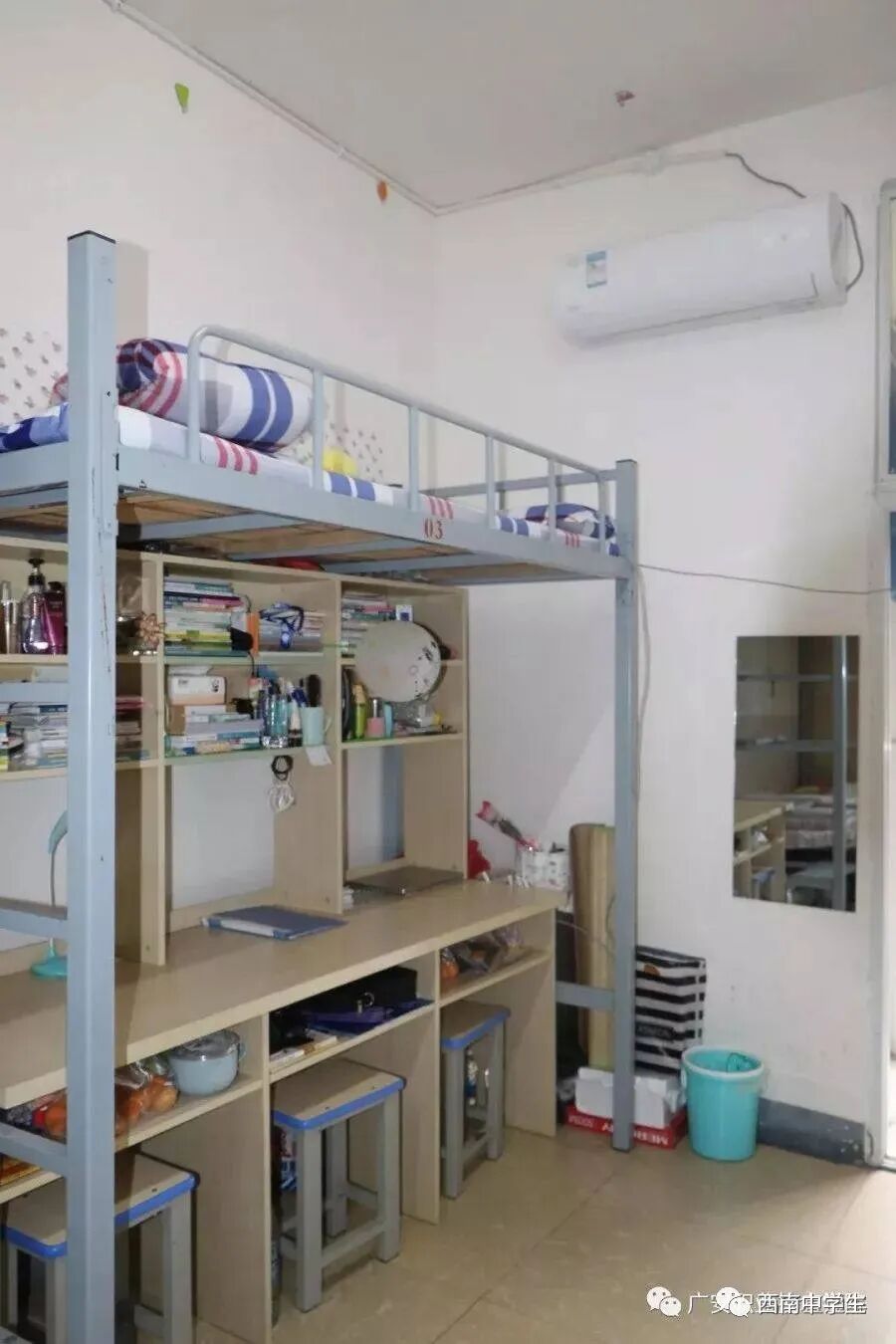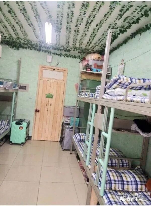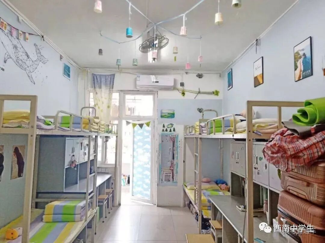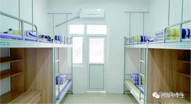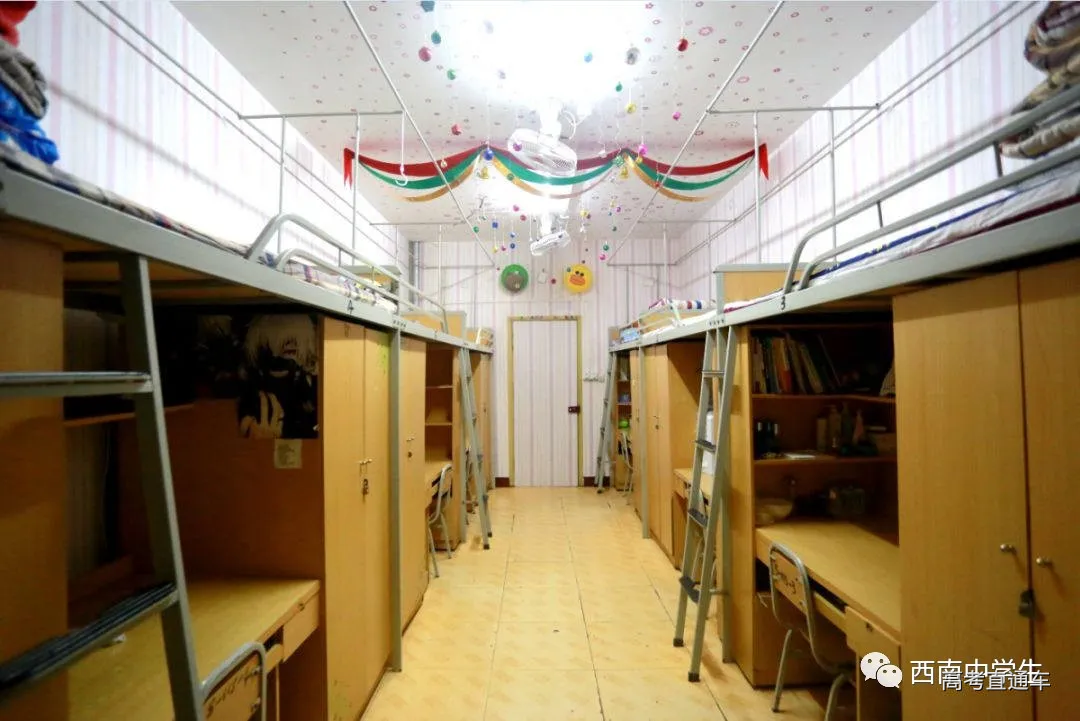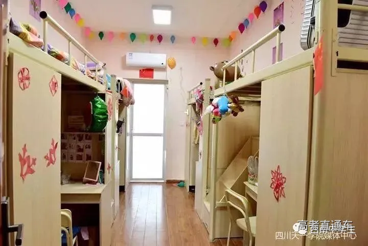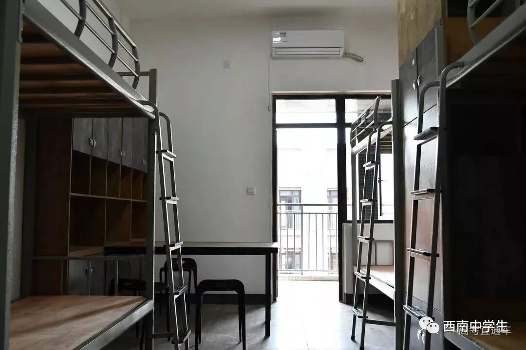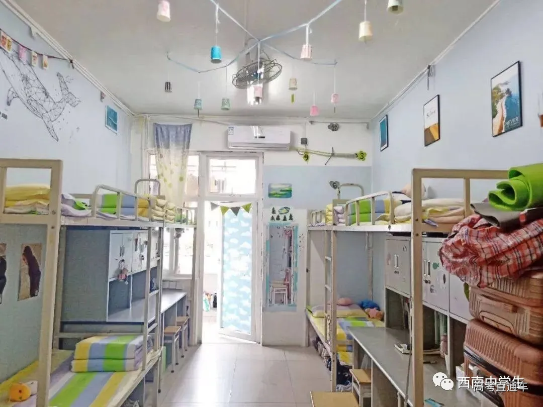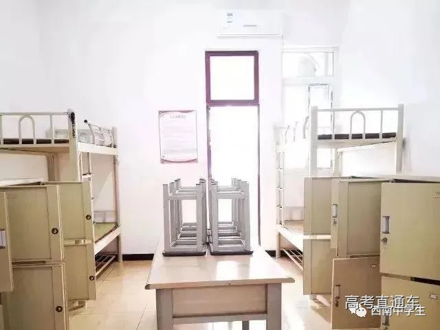 上下铺六人间,有空调、单独洗浴间。(关注西南中学生(ID:sczxswx),获取更多最新四川高考资讯)