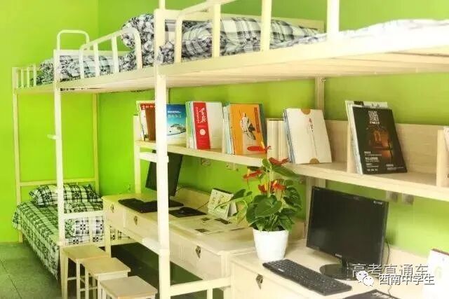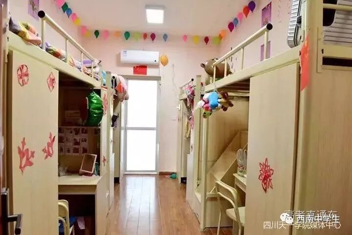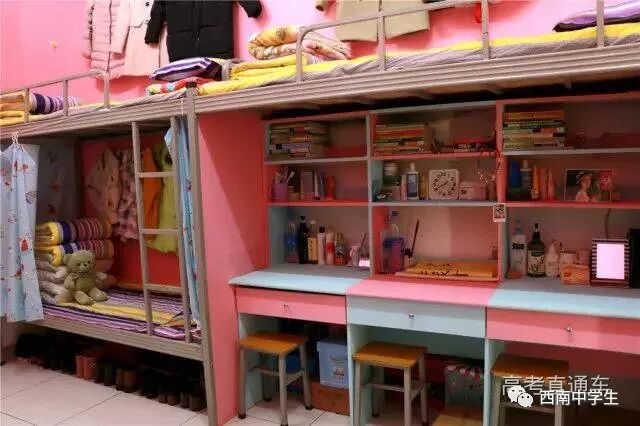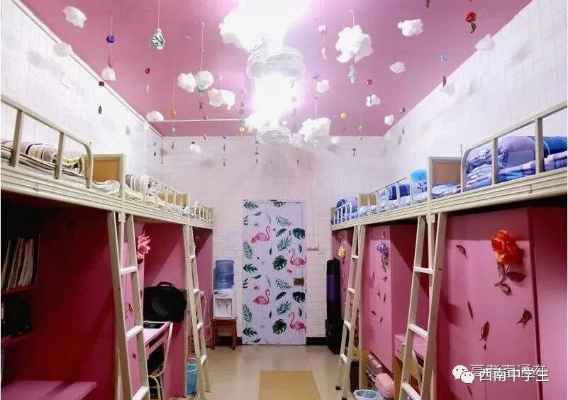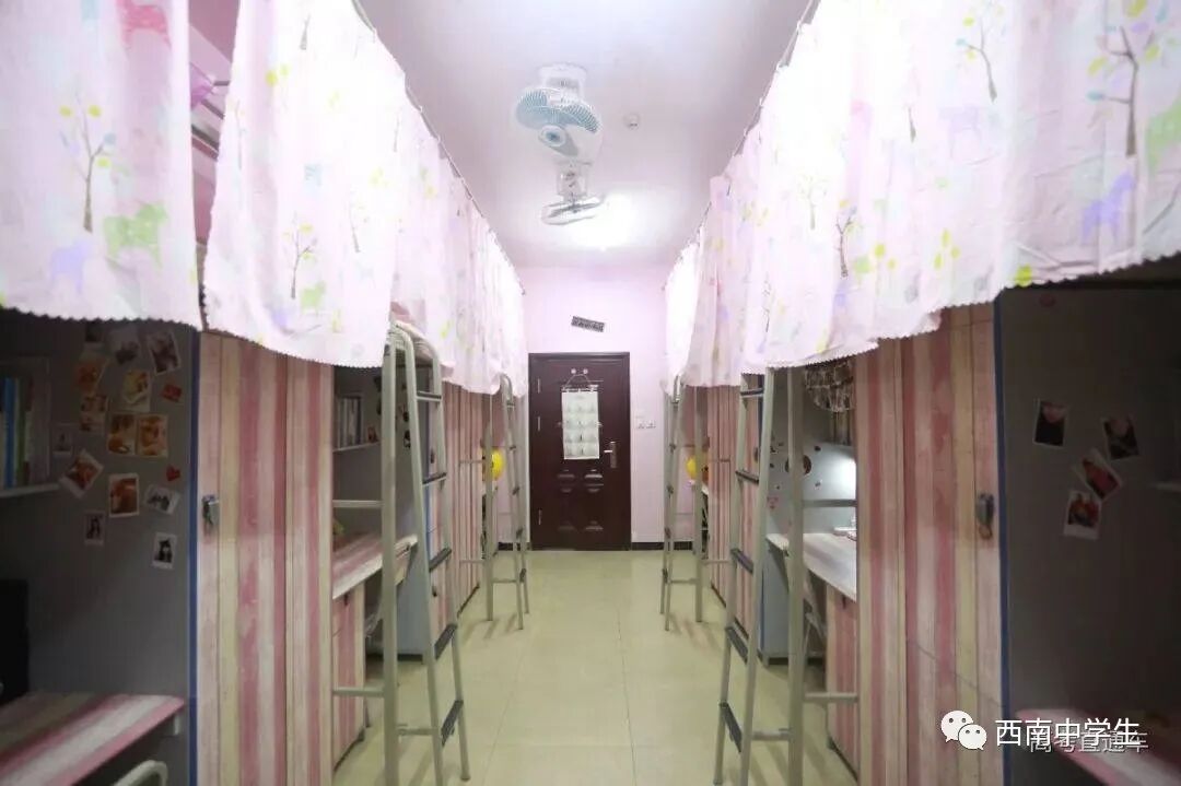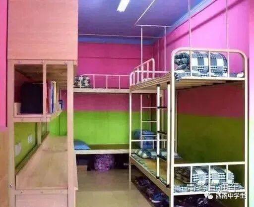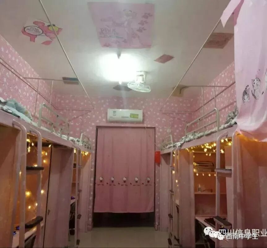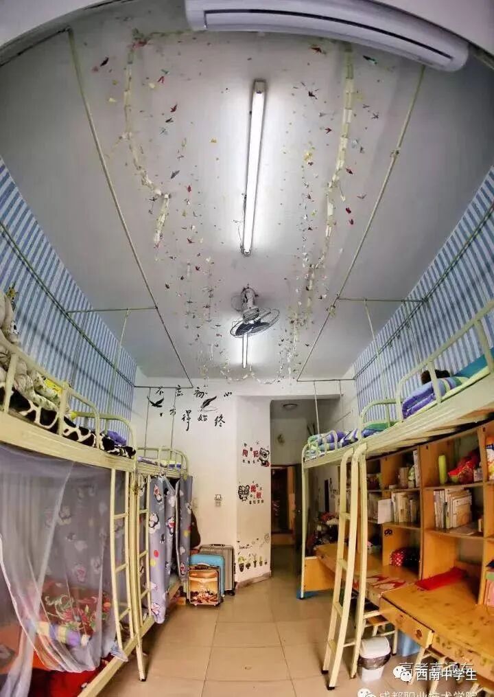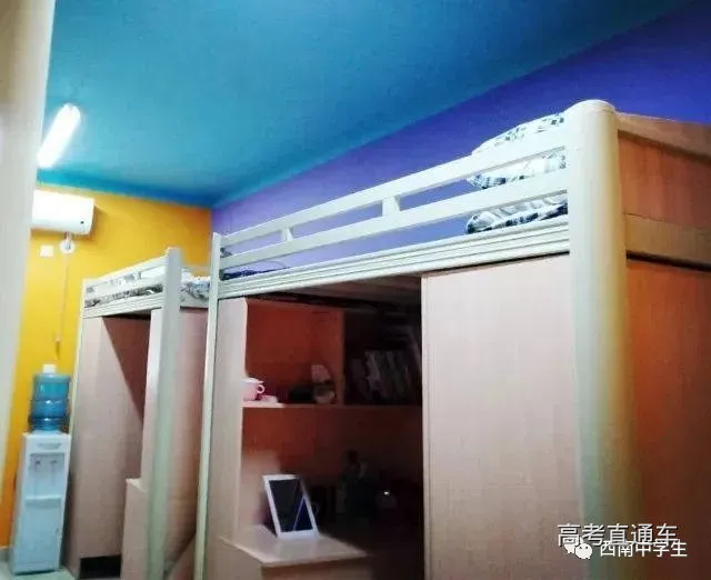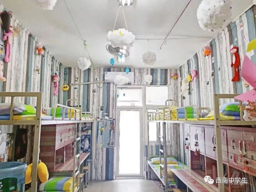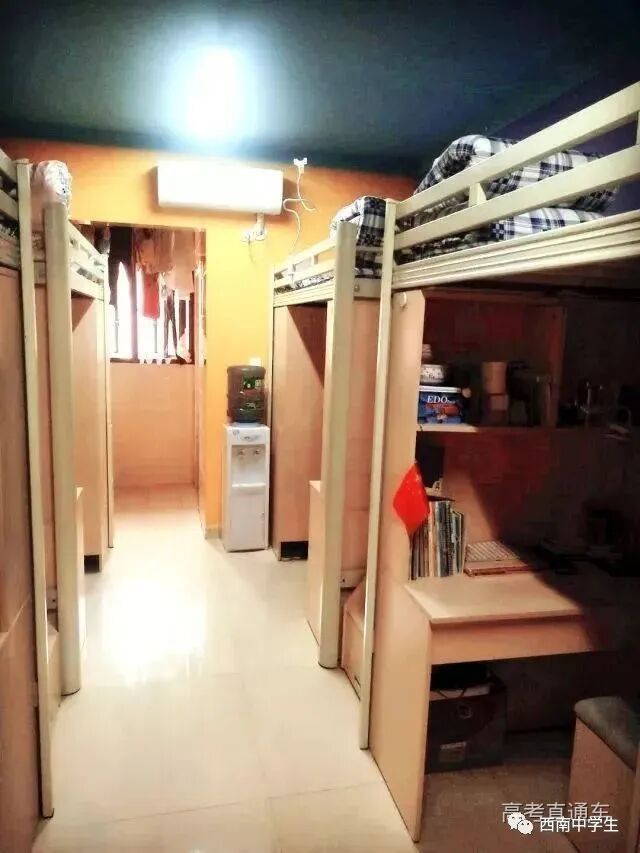 6人间、空调、热水、独卫、洗漱台、WiFi等,有三色可变换的文艺灯,还有超大温馨书桌。(关注西南中学生(ID:sczxswx),获取更多最新四川高考资讯)