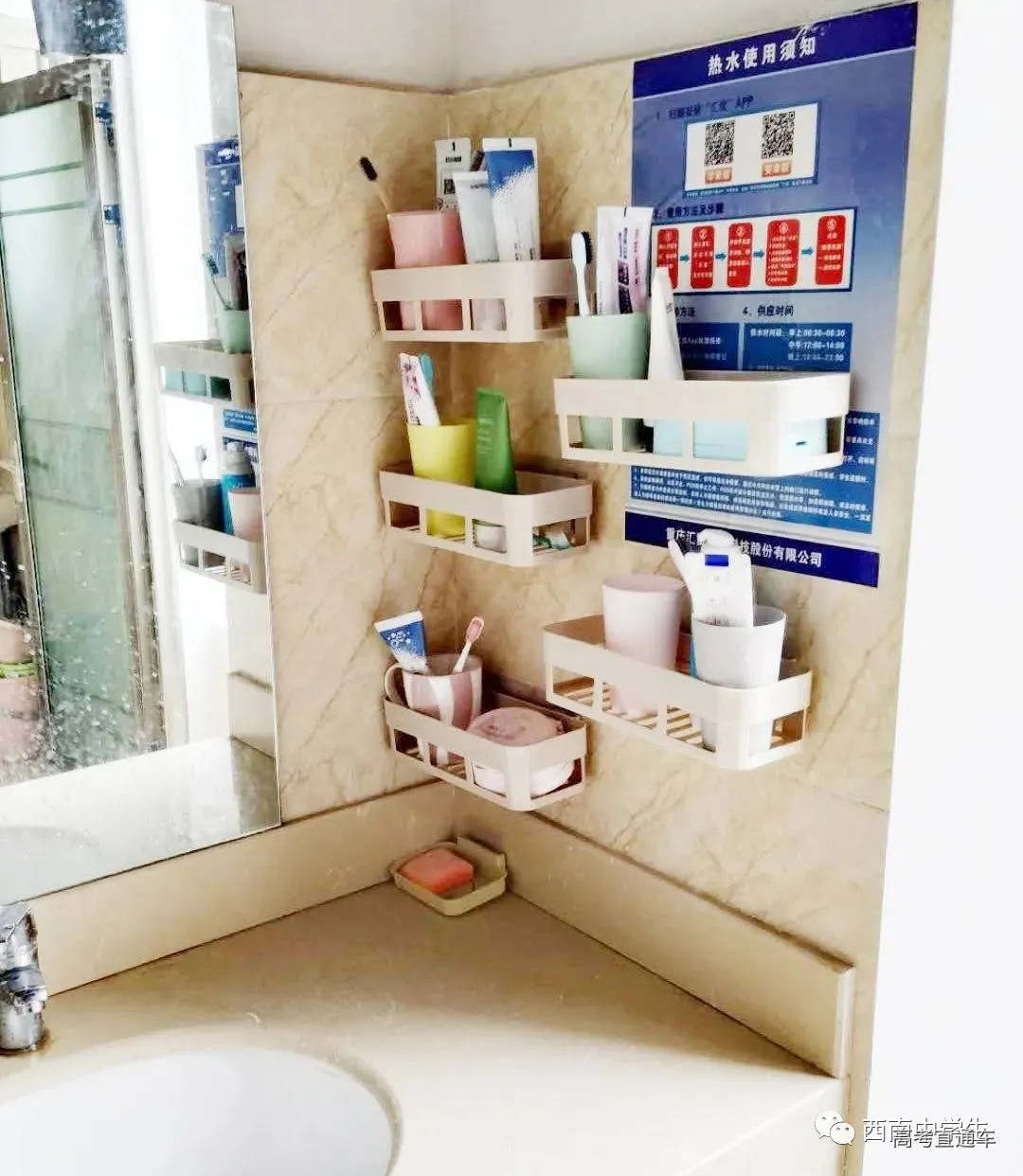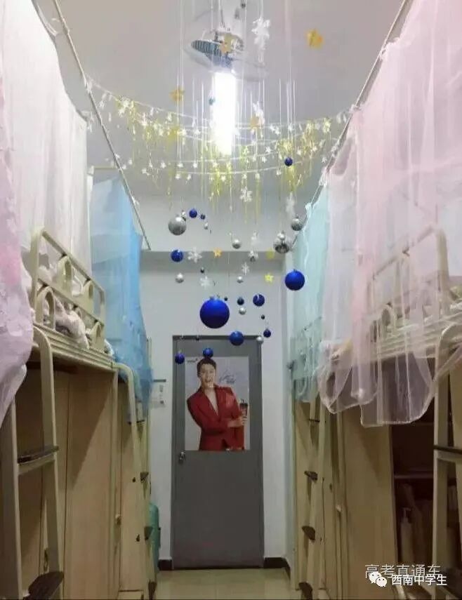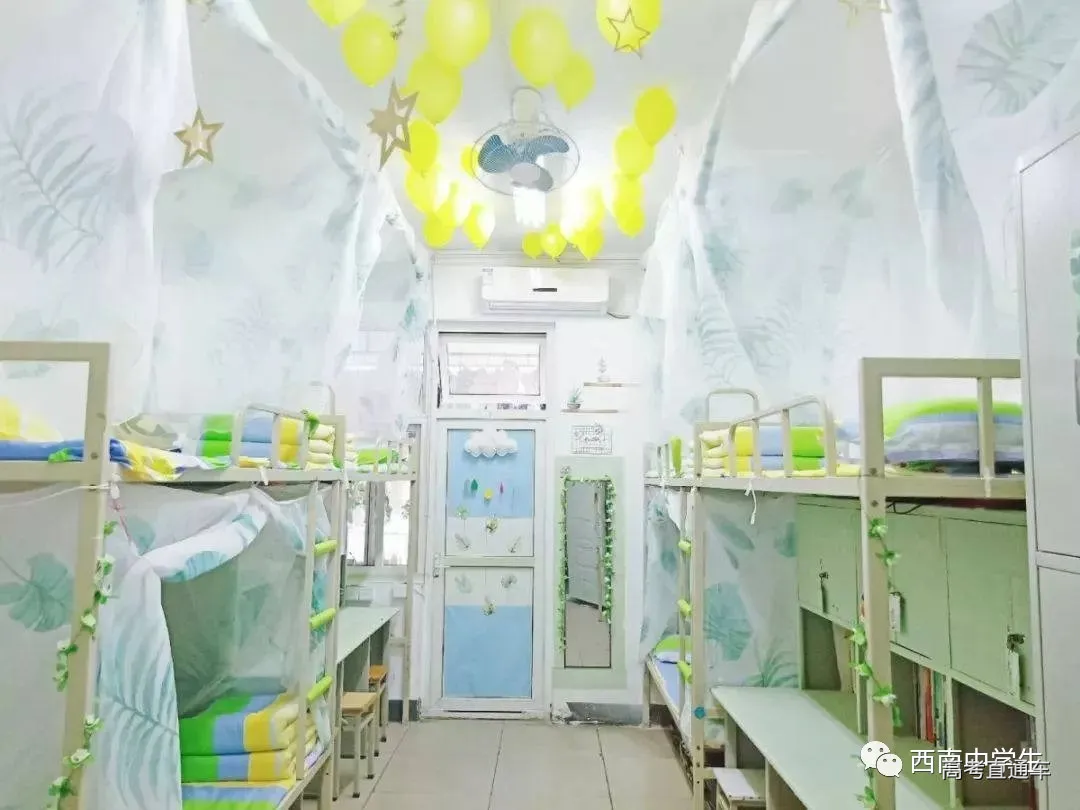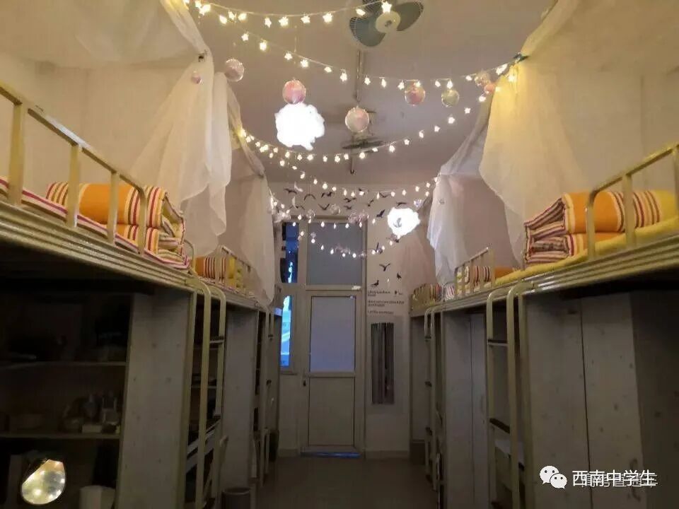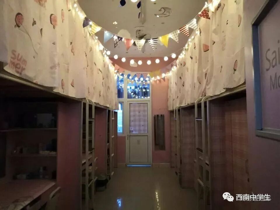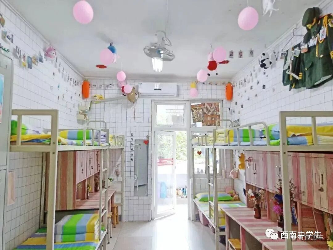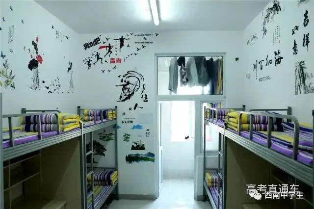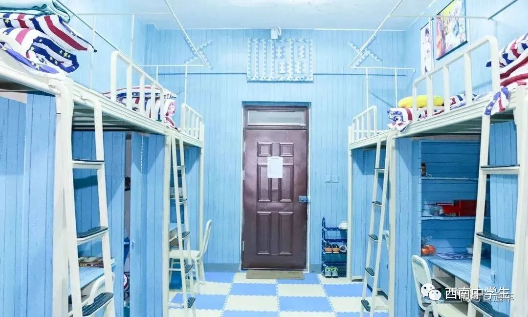 6人间、空调、热水、独卫、洗漱台、WiFi等,有三色可变换的文艺灯,还有超大温馨书桌。(关注西南中学生(ID:sczxswx),获取更多最新四川高考资讯)