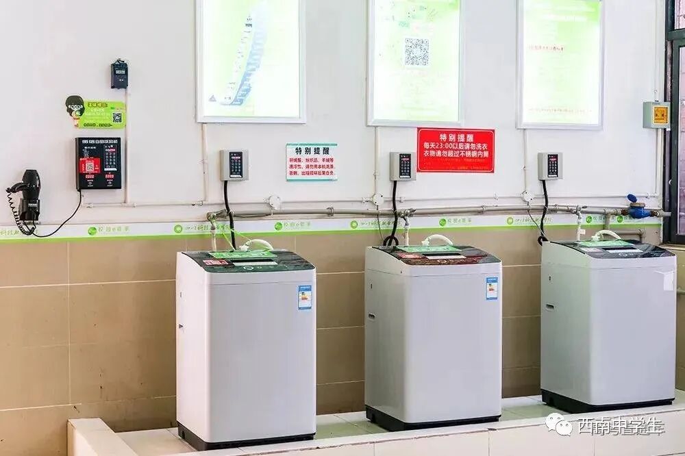 每栋寝室都会为“小科爱”们配备自助售卖机、洗衣机、烘干机等设施(偷偷告诉你们,西区寝室可是每一间寝室都有洗衣机哦,并且还有电梯呢)(关注西南中学生(ID:sczxswx),获取更多最新四川高考资讯)