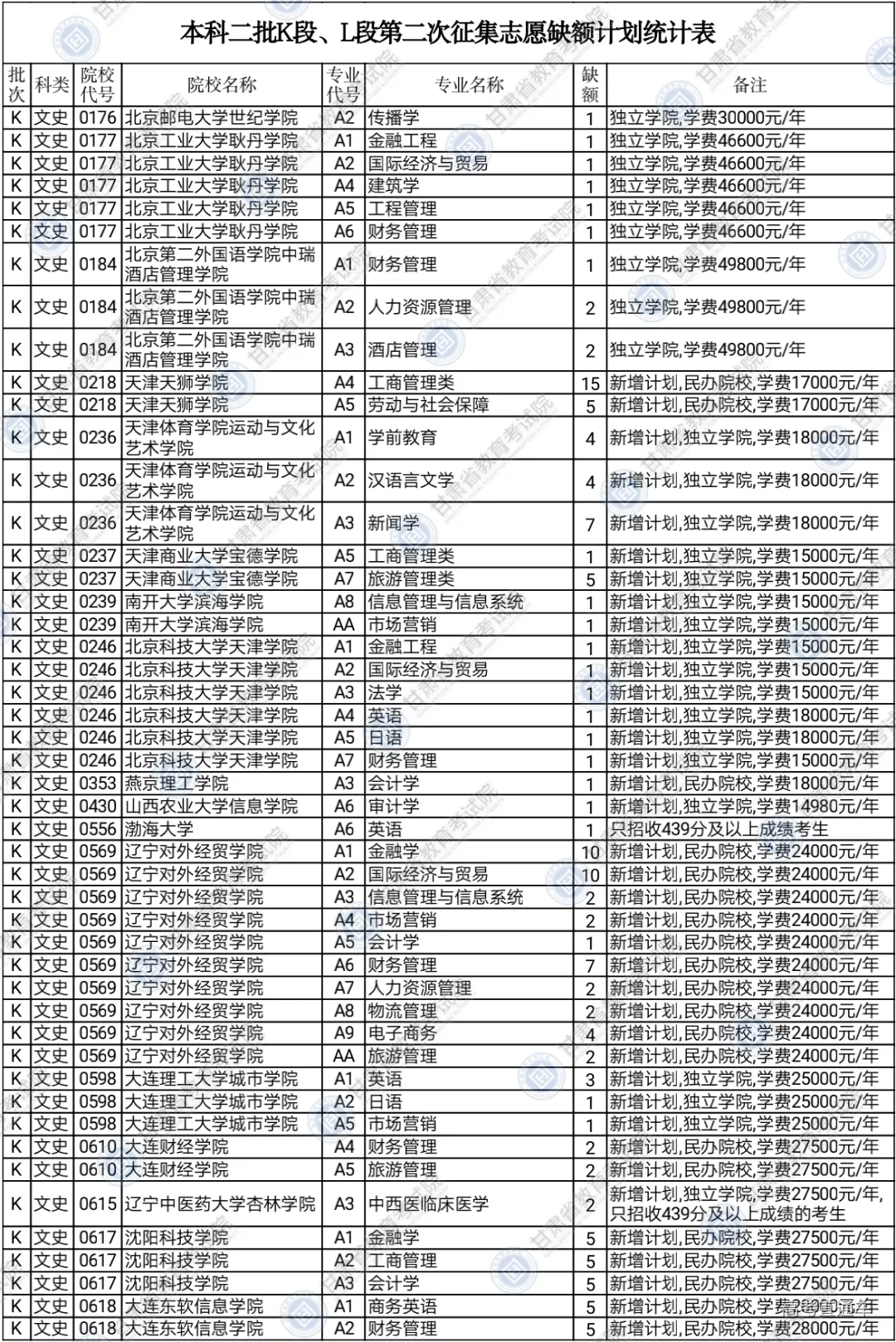 全省普通高等学校招生本科二批K段、L段第一次征集志愿已完成录取工作。现对第二次征集志愿工作说明如下:
