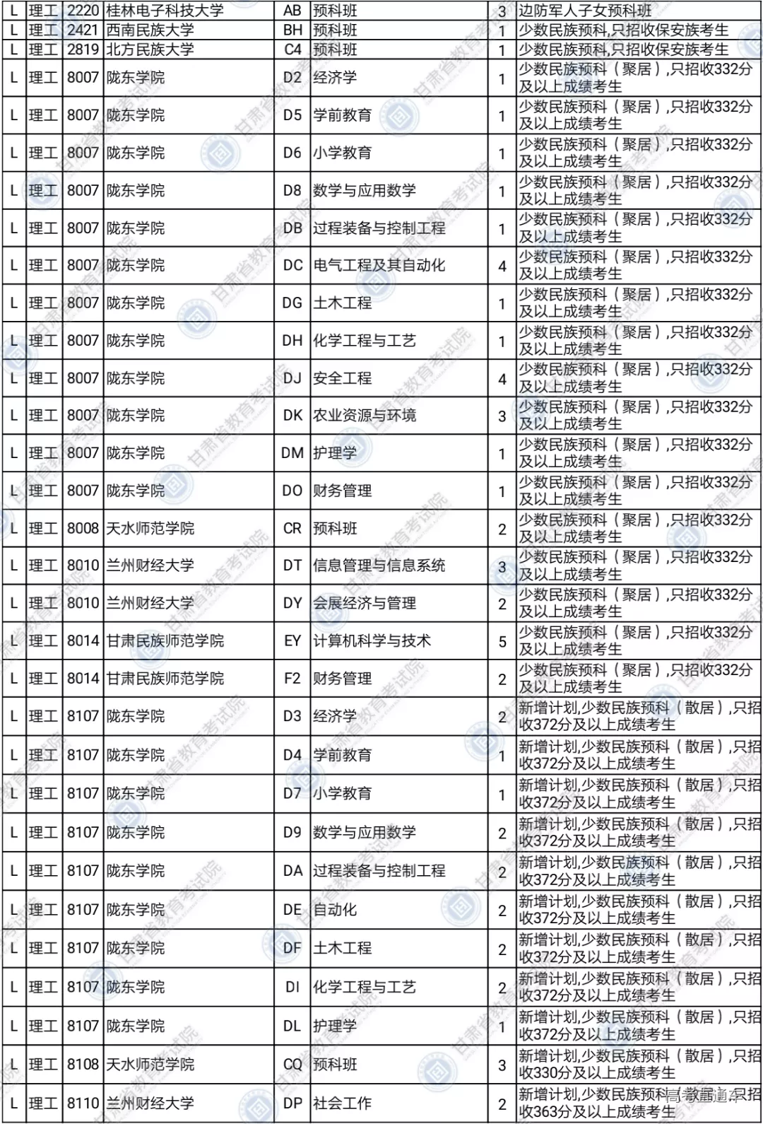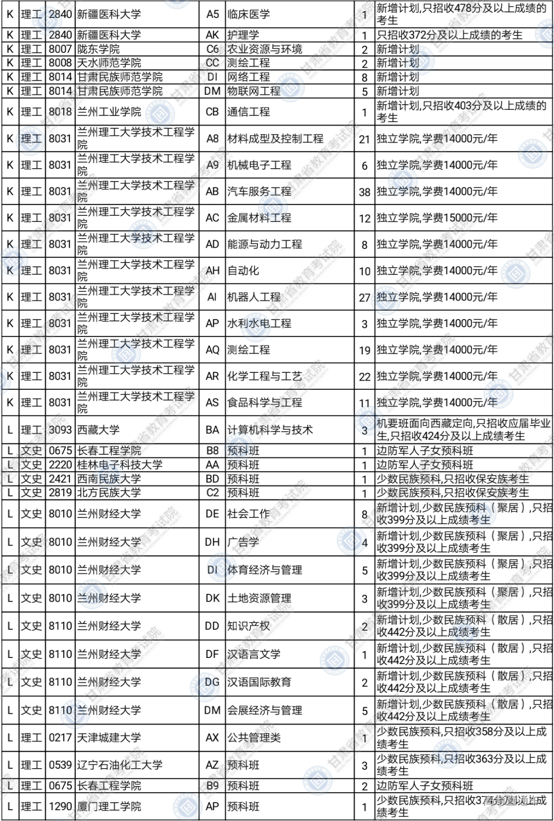 3、各院校征集志愿的填报要求在院校计划备注栏内标注,考生填报征集志愿时需同时参照《2020年甘肃省普通高等学校招生专业目录》(上册、中册)中该校公布的备注要求;