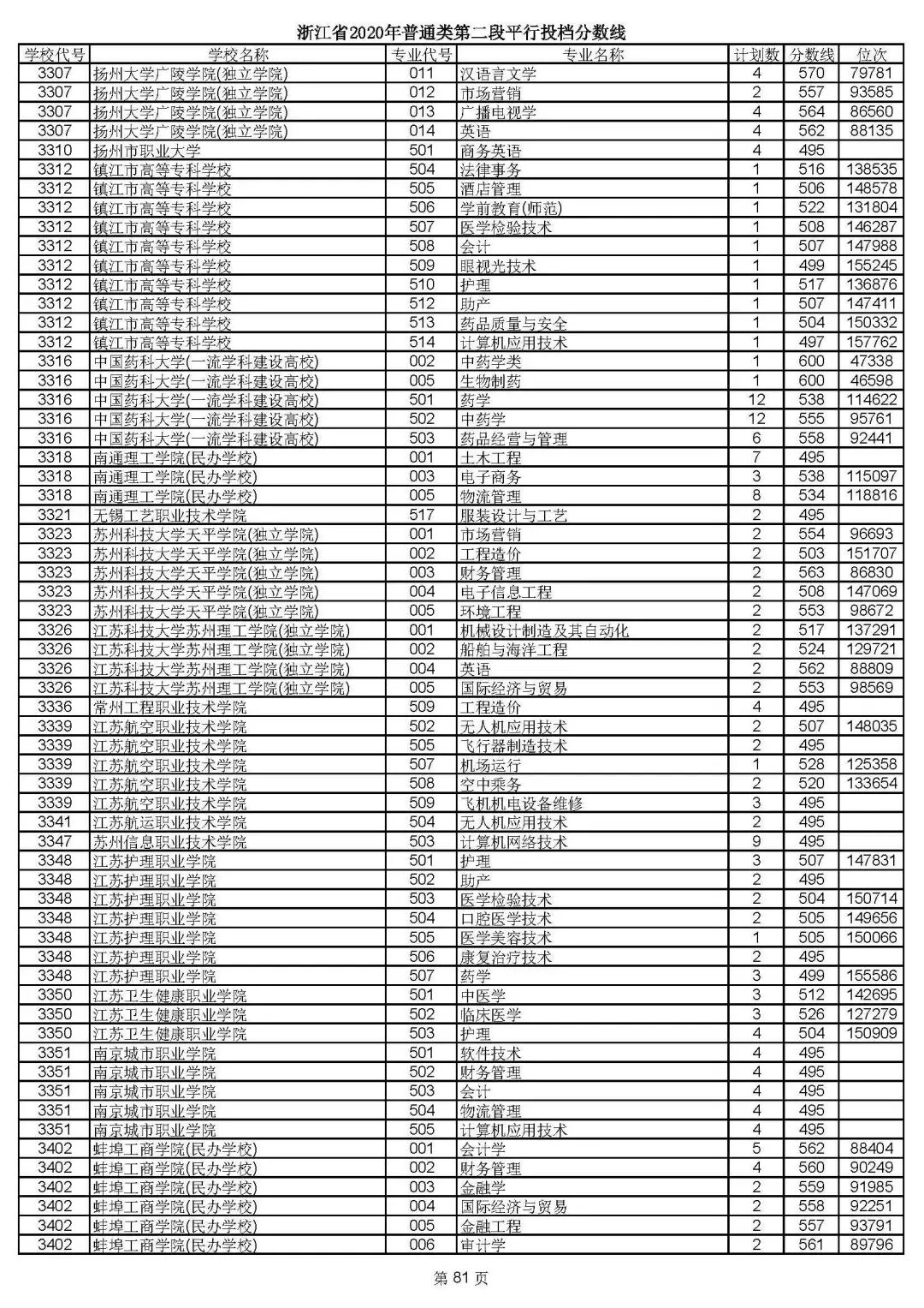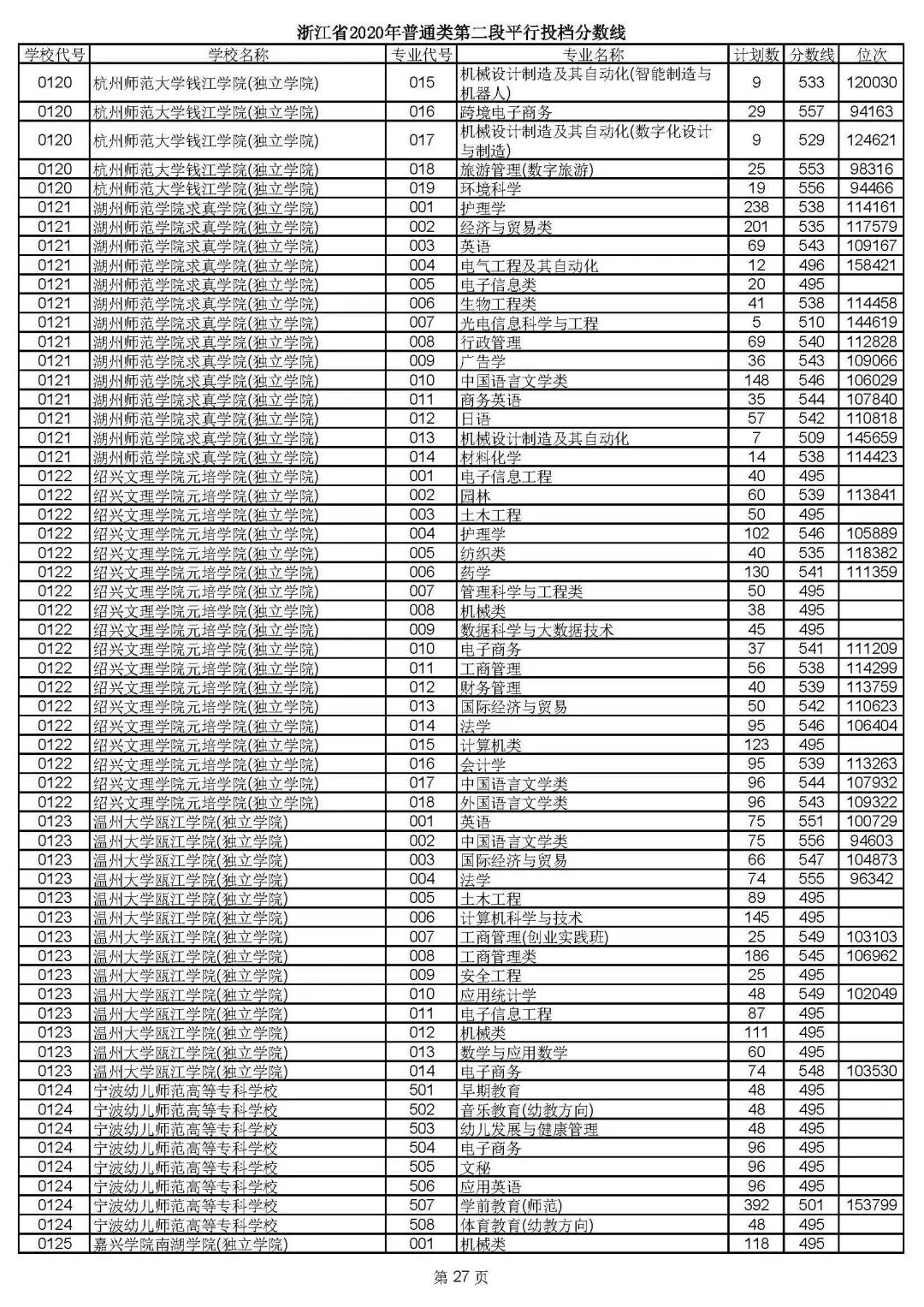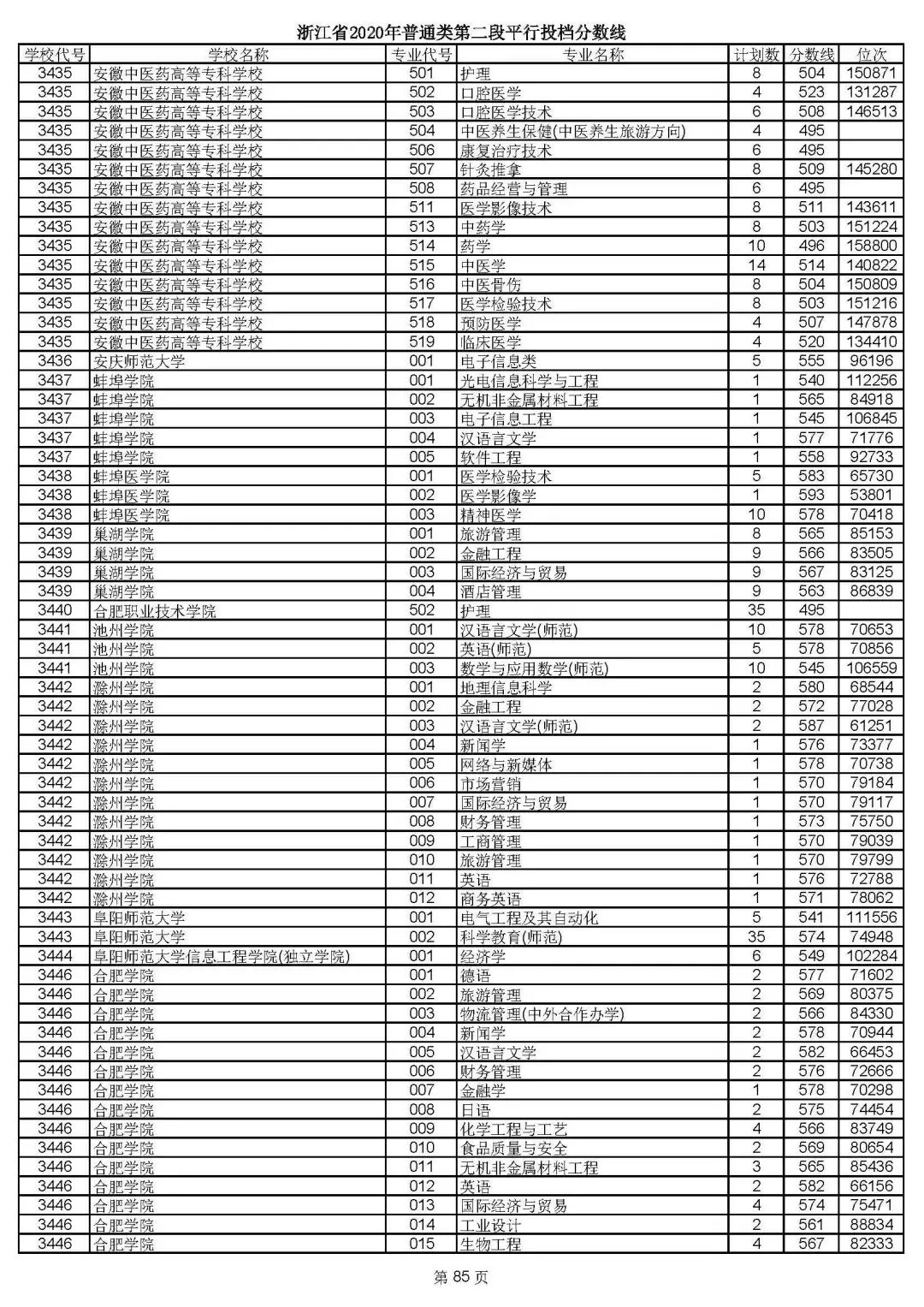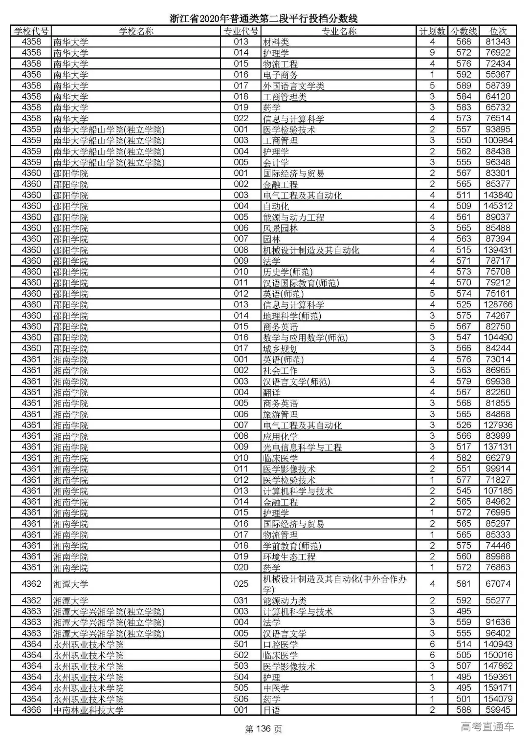 今天上午,浙江2020年高考普通类第二段、艺术类第二批第二段、体育类第二段平行志愿正式投档,高校专业分数线也出炉啦。按照我省录取进程,预计9月1日晚,考生可通过浙江省教育考试院网站(www.zjzs.net)、“浙江考试”微信公众号或“浙里办”APP查询自己本轮录取状态。
