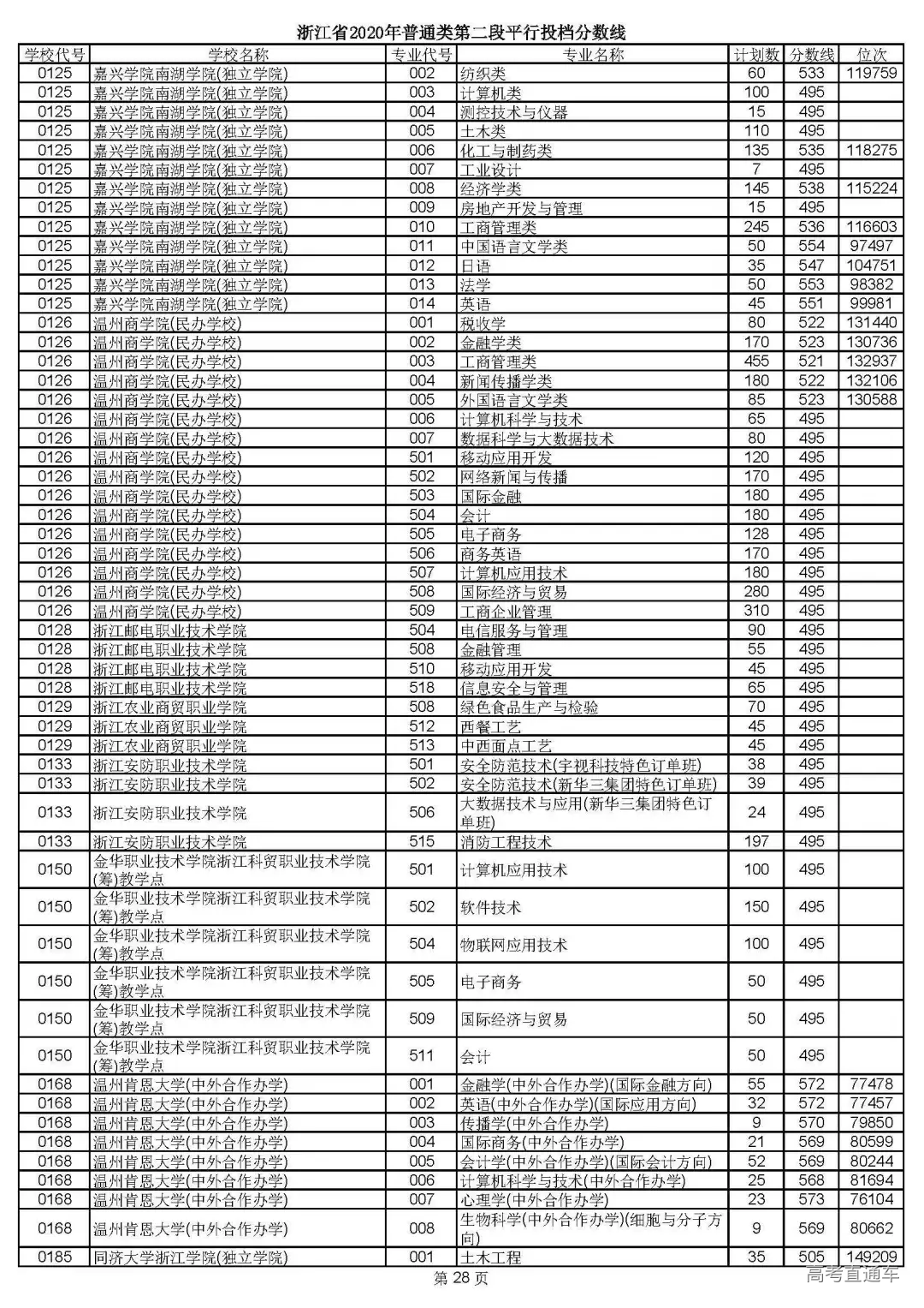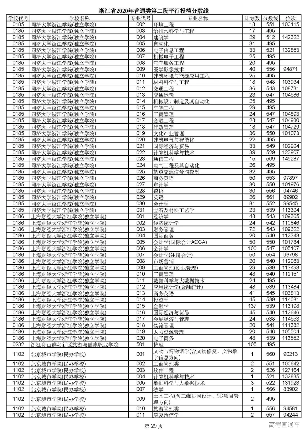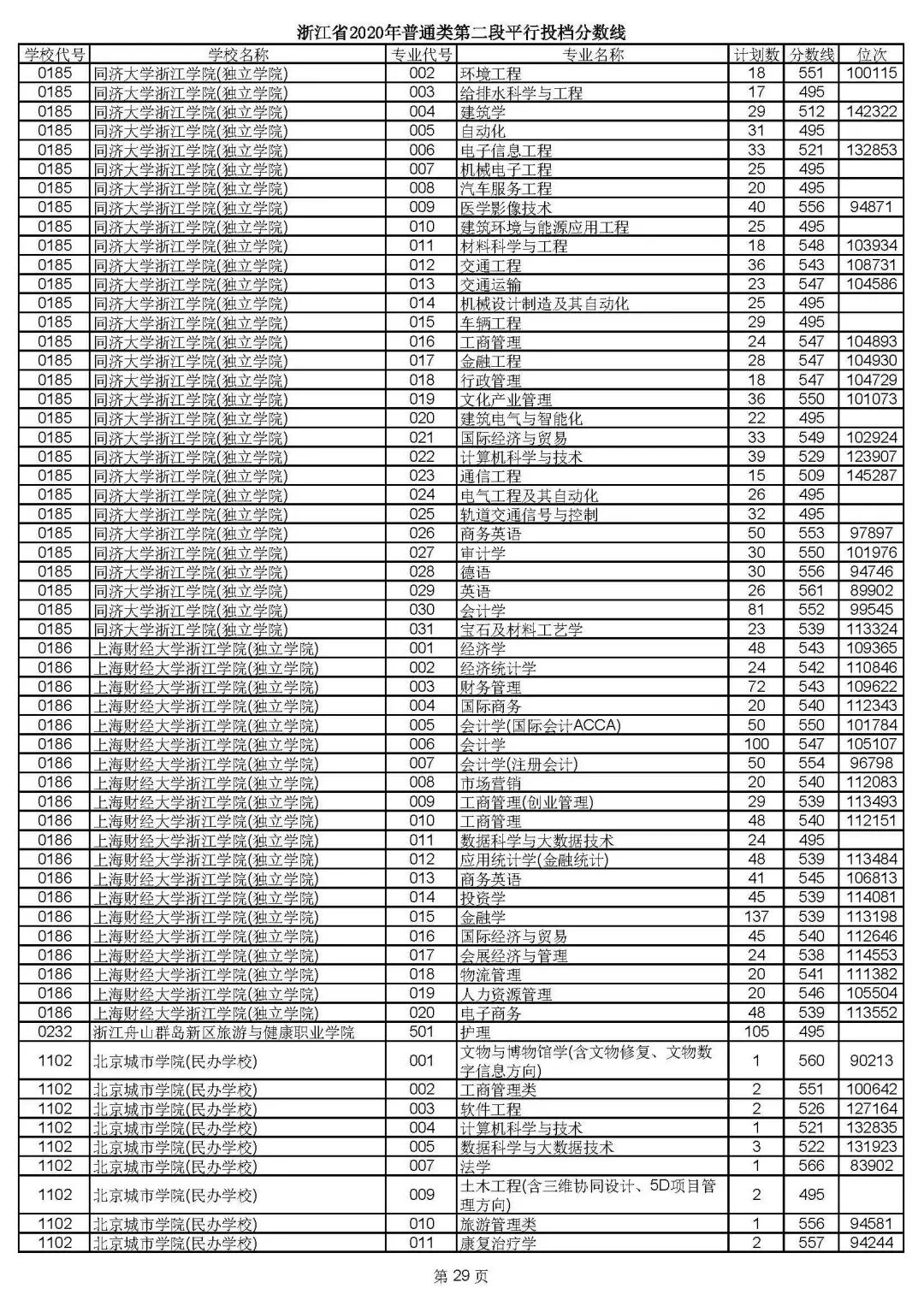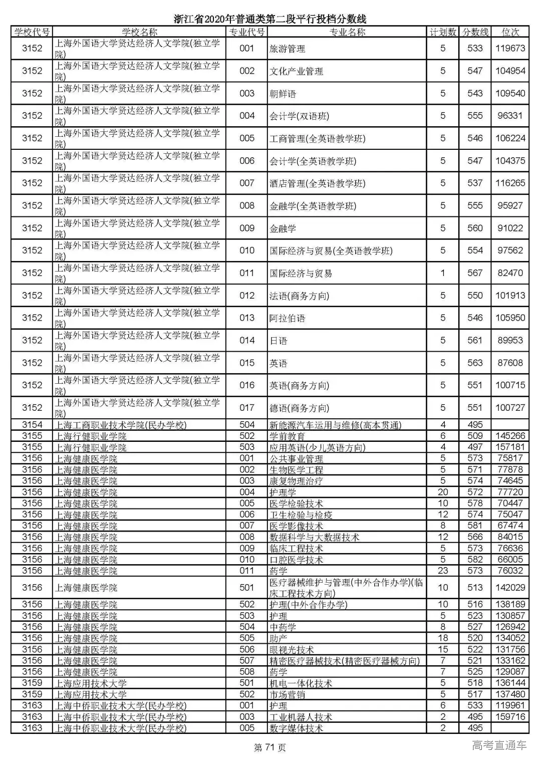 今天上午,浙江2020年高考普通类第二段、艺术类第二批第二段、体育类第二段平行志愿正式投档,高校专业分数线也出炉啦。按照我省录取进程,预计9月1日晚,考生可通过浙江省教育考试院网站(www.zjzs.net)、“浙江考试”微信公众号或“浙里办”APP查询自己本轮录取状态。