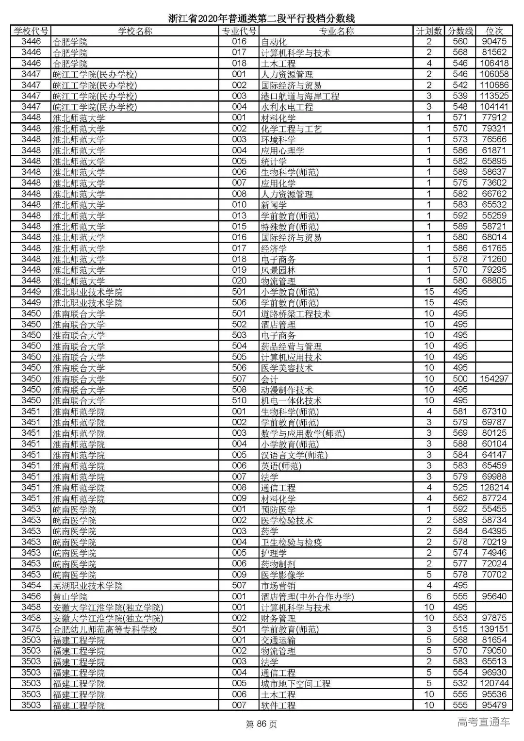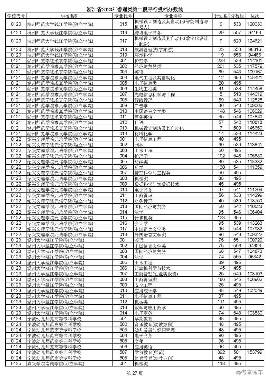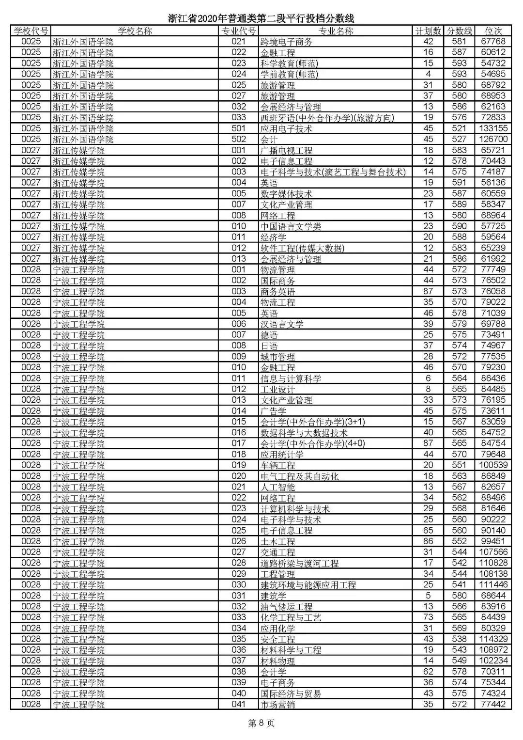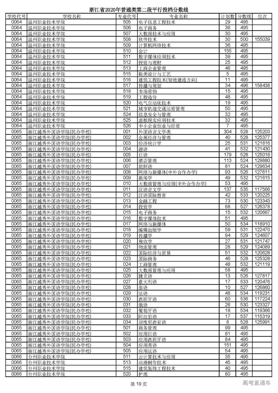 今天上午,浙江2020年高考普通类第二段、艺术类第二批第二段、体育类第二段平行志愿正式投档,高校专业分数线也出炉啦。按照我省录取进程,预计9月1日晚,考生可通过浙江省教育考试院网站(www.zjzs.net)、“浙江考试”微信公众号或“浙里办”APP查询自己本轮录取状态。