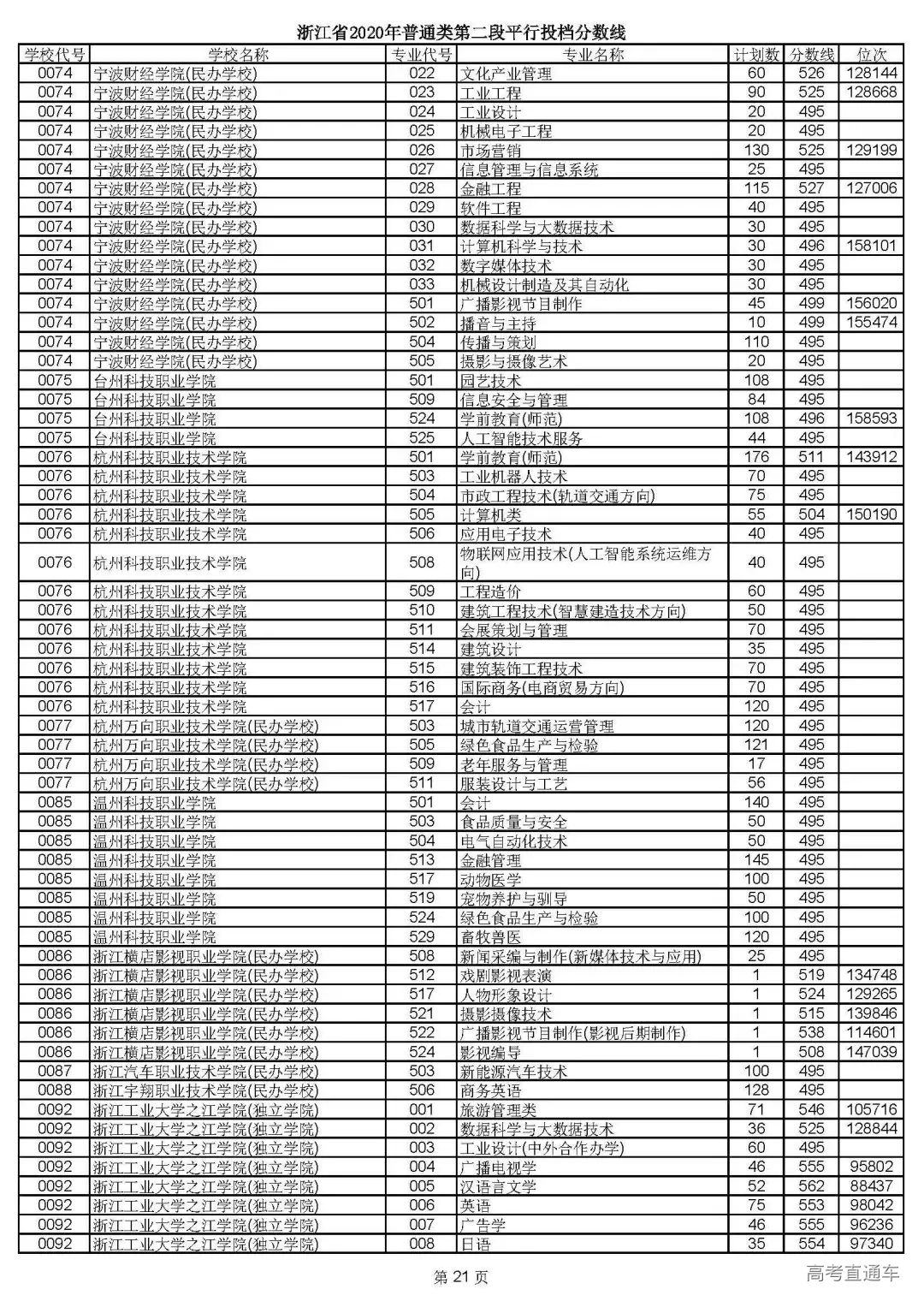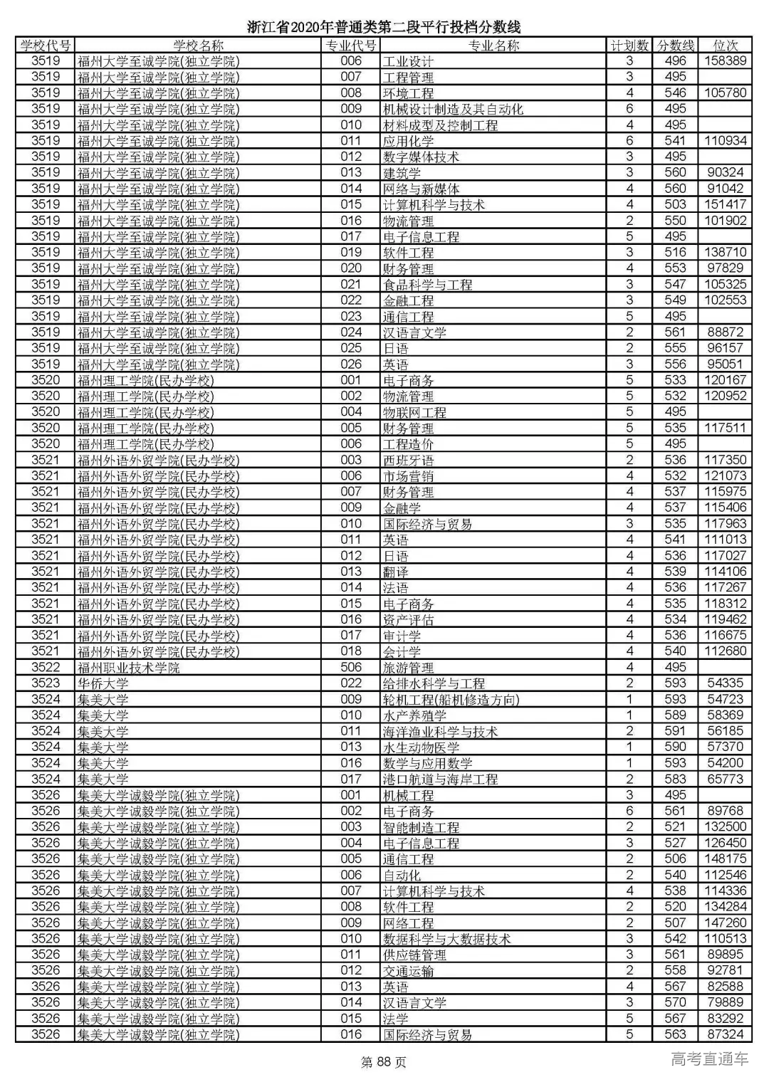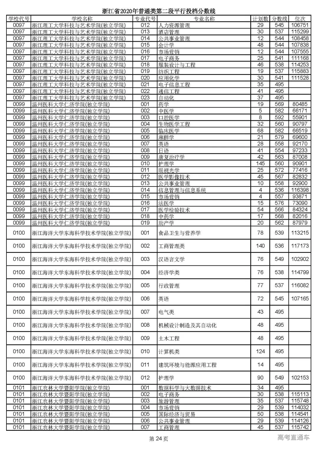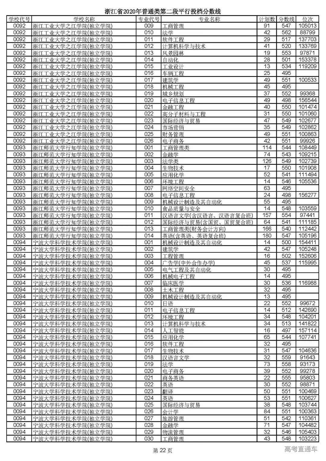 今天上午,浙江2020年高考普通类第二段、艺术类第二批第二段、体育类第二段平行志愿正式投档,高校专业分数线也出炉啦。按照我省录取进程,预计9月1日晚,考生可通过浙江省教育考试院网站(www.zjzs.net)、“浙江考试”微信公众号或“浙里办”APP查询自己本轮录取状态。