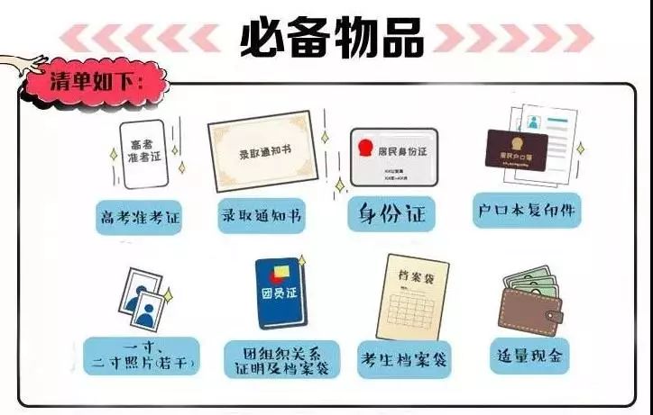 发送的录取通知书邮件里一应俱全,最好全带上,以备不时之需,包括银行卡。
