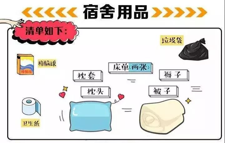 被单一定要记得备两套,方便换洗。棉絮床垫可在学校够买哦。