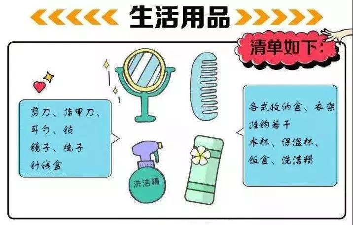 打扫卫生必需品。拖把、扫帚、垃圾桶一般学校会发。