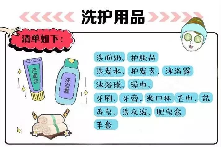 3.牙刷、牙膏、漱口杯、毛巾、脸盆