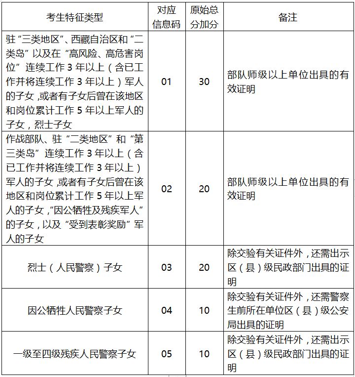 对于符合军人、警察、烈士子女加分条件的考生,按有关规定给予适当加分投档录取的照顾。