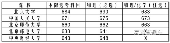通过对在京高校录取分数情况的分析发现,在京部属院校招生录取,物理必选专业组录取分数普遍高于不限选考及任选科目专业组,最高分差8分,如北京师范大学;而在京市属院校中,物理必选专业组投档分普遍低于不限选考、任选科目及必选其他科目专业组,且任选科目专业组投档线普遍最高,如北京建筑大学,任选物理、历史、地理专业组投档线554分,比不限选考专业组530分高出24分,比物理必选专业组512分高出42分。请看下表:
