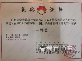赖俊委,“华软奖学金获得者”,曾获“2017年广东大学生年度人物”、大学生创新创业训练计划国家级立项,广东省大学生“攀登计划”立项”,个人获国家级荣誉5项,省级荣誉7项,市区级荣誉4项。在读期间积极参与科技项目研发,曾有“基于物联网的无人船控制系统(同舟无人船)”“基于信息熵权法的水质监测信息融合算法”“AR盒子后台管理服务器开发”等项目,其中“同舟无人船”项目已获得国家级奖项4项、省级5项、市区级2项,申请实用型专利2项、发表国家级期刊1篇,并受到南方卫视《城市特搜》媒体的专题报道。其研发智能无人船事迹,2020年5月19日的”学习强国“进行了报道。