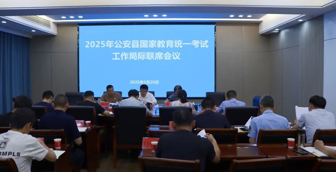 5月20日,公安县2025年国家教育统一考试工作局际联席会议在县政府召开。联席会议总召集人、副县长陈俊杰出席会议并讲话,联席会议召集人、县政府办副主任何妍文主持会议,联席会议召集人、县教育局局长赵虎,联席会议各成员单位分管负责同志参加会议。