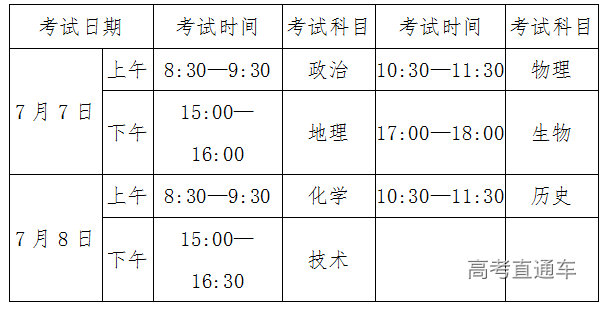 2023年海南省普通高中学业水平合格性考试时间安排表