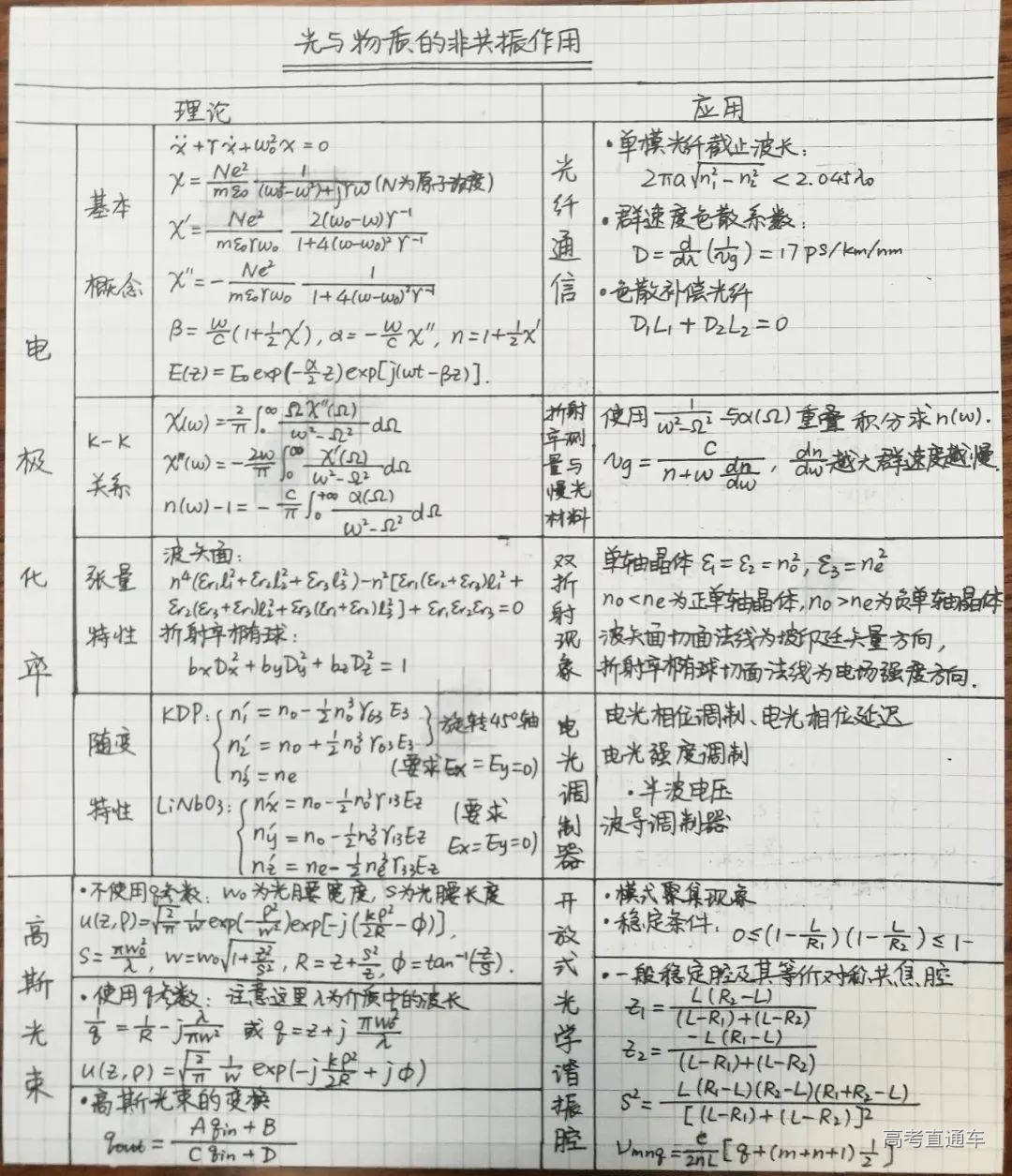 这门课是电子系的专业限选课,融合了激光原理、光电调制等内容。我在大二下学期时,出于对光电子研究的兴趣,选修了这门课。这门课的概念公式较多,因此我特意分门别类整理了课上涉及到的物理公式,确保自己理解了这些公式的物理意义,并能熟练地用它们进行计算。