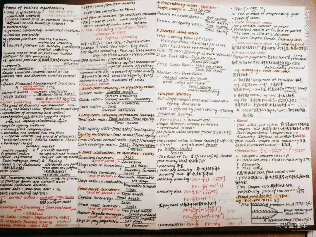 其实一学期的课程内容远不止这一张两面A4纸的篇幅,绝大多数的笔记还在我打印出来的PPT上(这也是我个人最推荐的记笔记方式),但这种整理方式确实更容易让人理清课程的知识结构。女神这样安排真的是用心良苦啦~最后再次诚挚安利这门课,非常欢迎对公司金融感兴趣的同学选修,还可以通过小组作业结识很多可爱的国际朋友哦!
