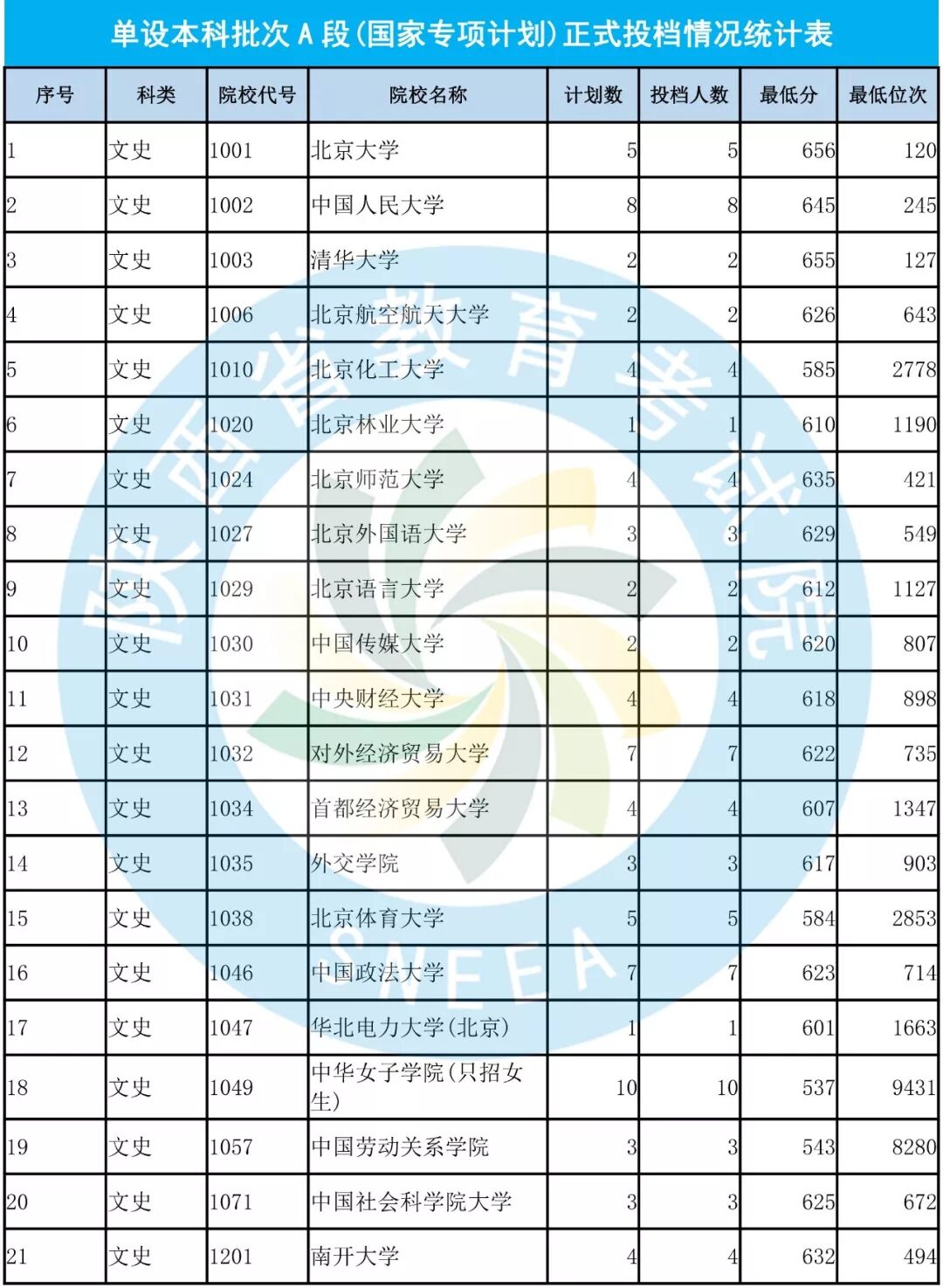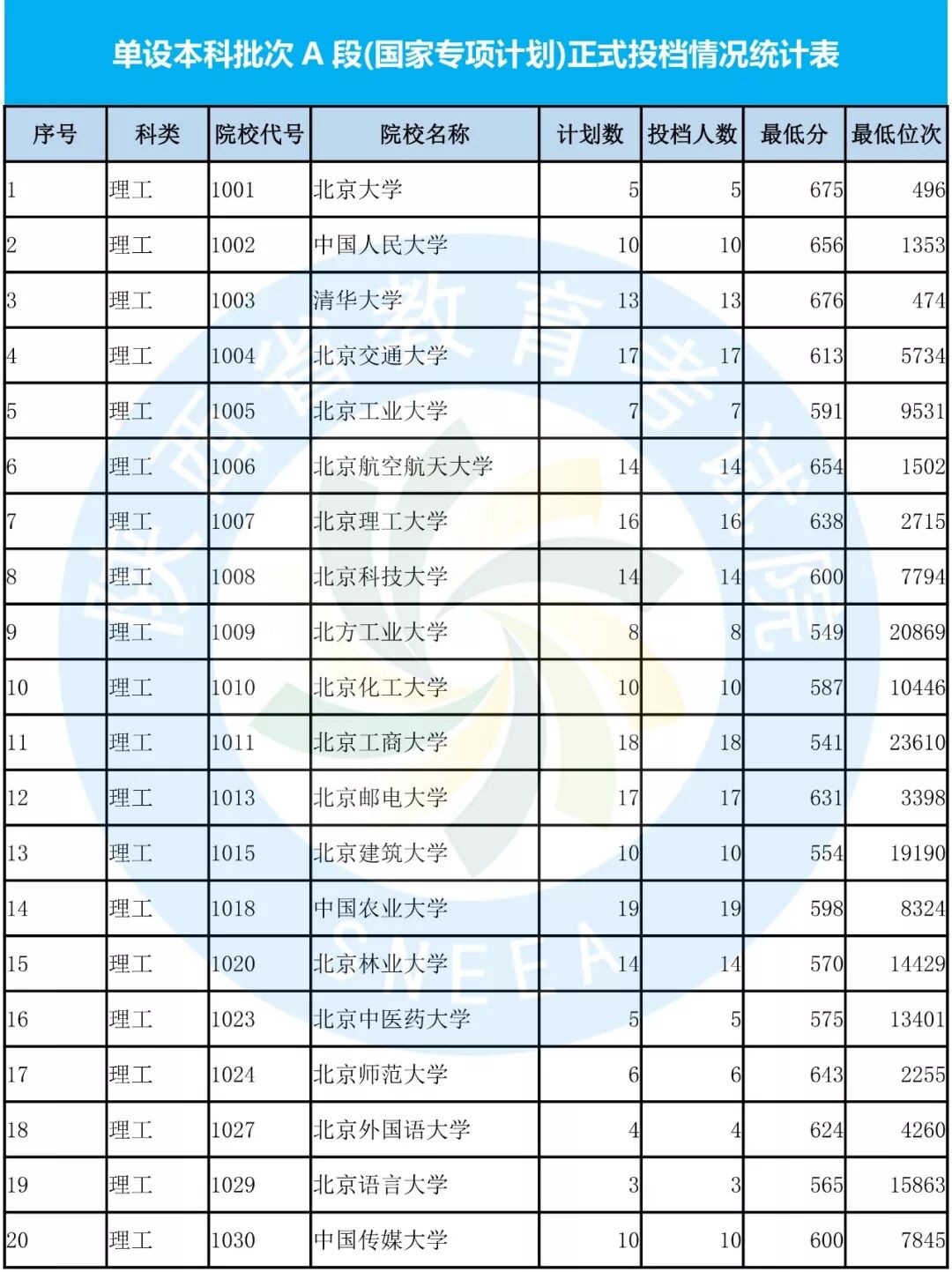 单设本科A段正式投档