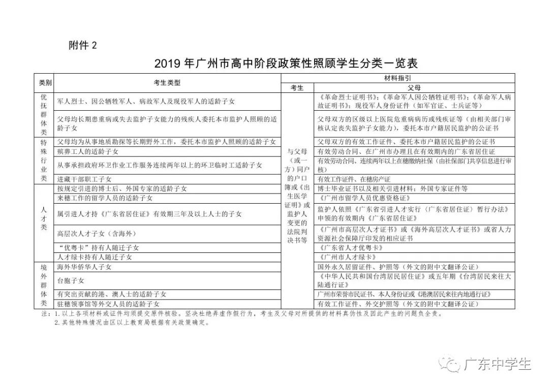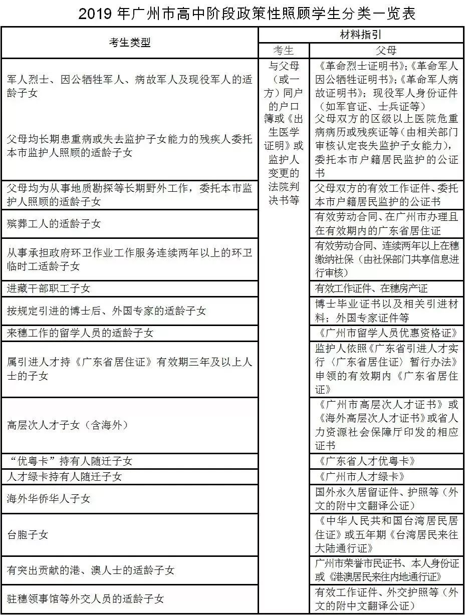 (三)符合公办普通高中报考条件的随迁子女。具体审核要求按照《广州市招生考试委员会办公室关于做好来穗人员随迁子女在我市参加2019年高中阶段学校招生考试资格审核工作的通知》(穗招考办〔2019〕6号)执行。
