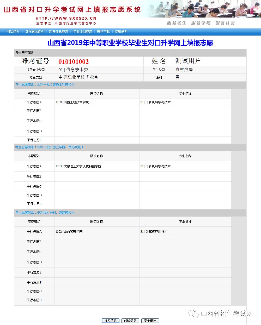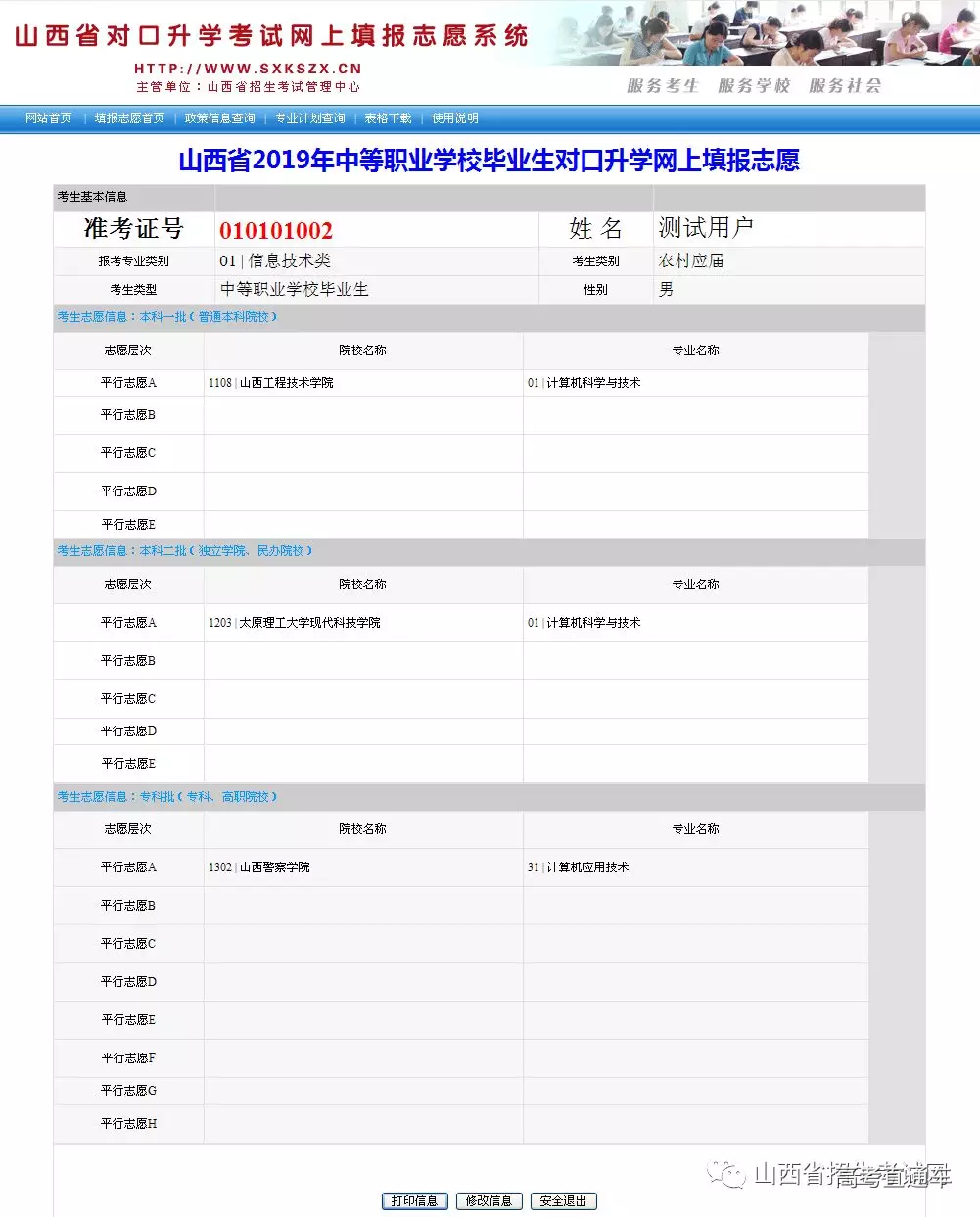 确认提交成功后,在规定时间内,可查看、修改自己已填报的志愿: