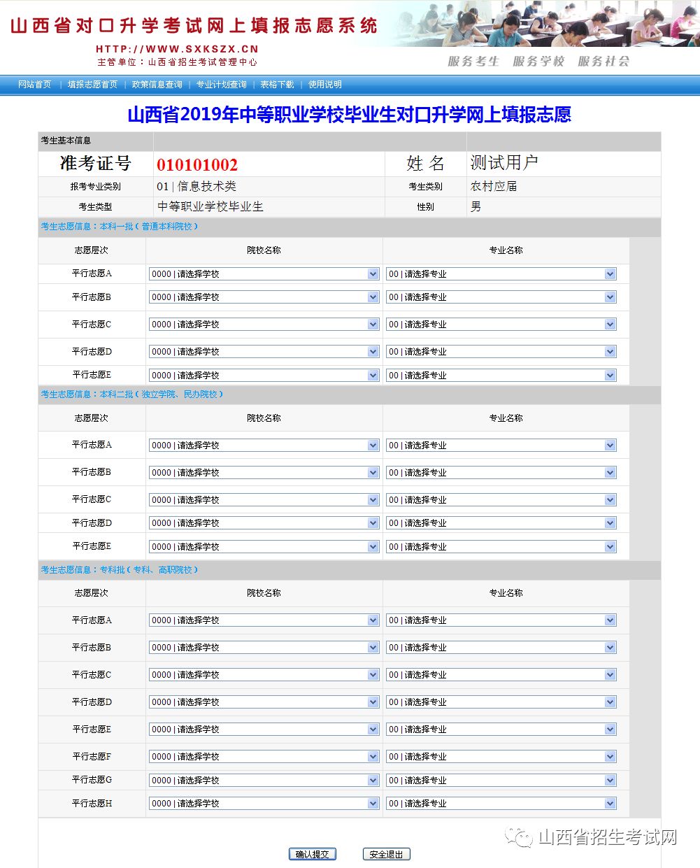 选择“对口升学考试→对口升学网上填报志愿入口”,进入如下界面: