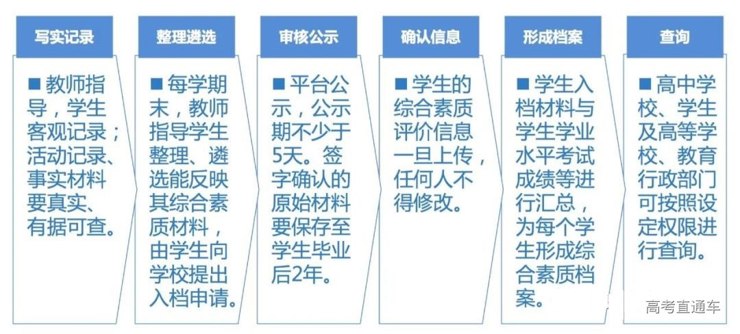 综合素质评价的记录程序依次为写实记录、整理遴选、审核公示、确认信息、形成档案、查询。