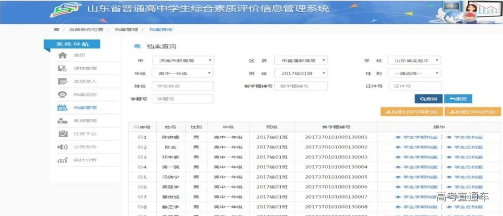学校在学生高一入学时,指导学生建立个人成长记录档案,使用省教育厅统一的综合素质评价管理系统(http://www.sdei.edu.cn/)进行综合素质电子档案管理。