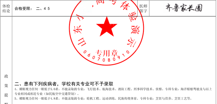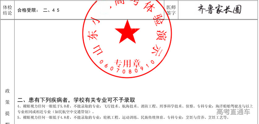 5、裸眼视力任何一眼低于4.8者,不能录取的专业:轮机工程、运动训练、民族传统体育。专科专业:烹饪与营养、烹饪工艺等。